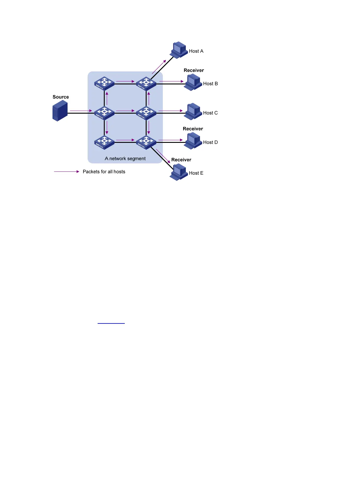 Assume that only Host B, Host D, and Host E need the information. If the information is broadcast to the