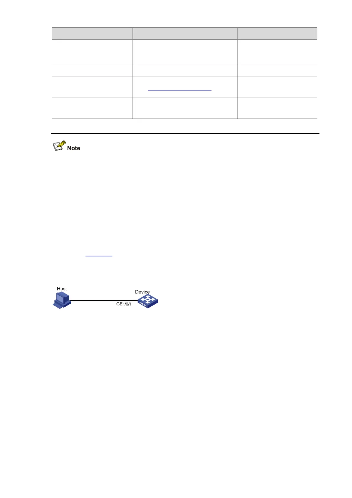 As shown in Figure 6-1, Host is connected to GigabitEthernet 1/0/1 of Device.