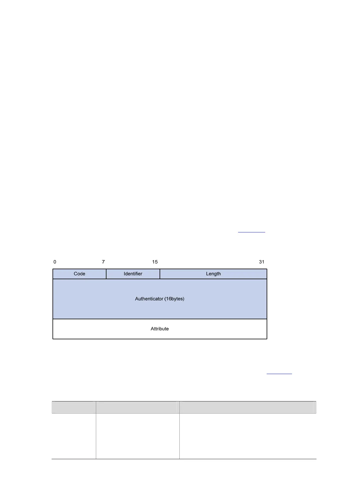 1) The Code field (1-byte long) is for indicating the type of the RADIUS packet. Table 1-1