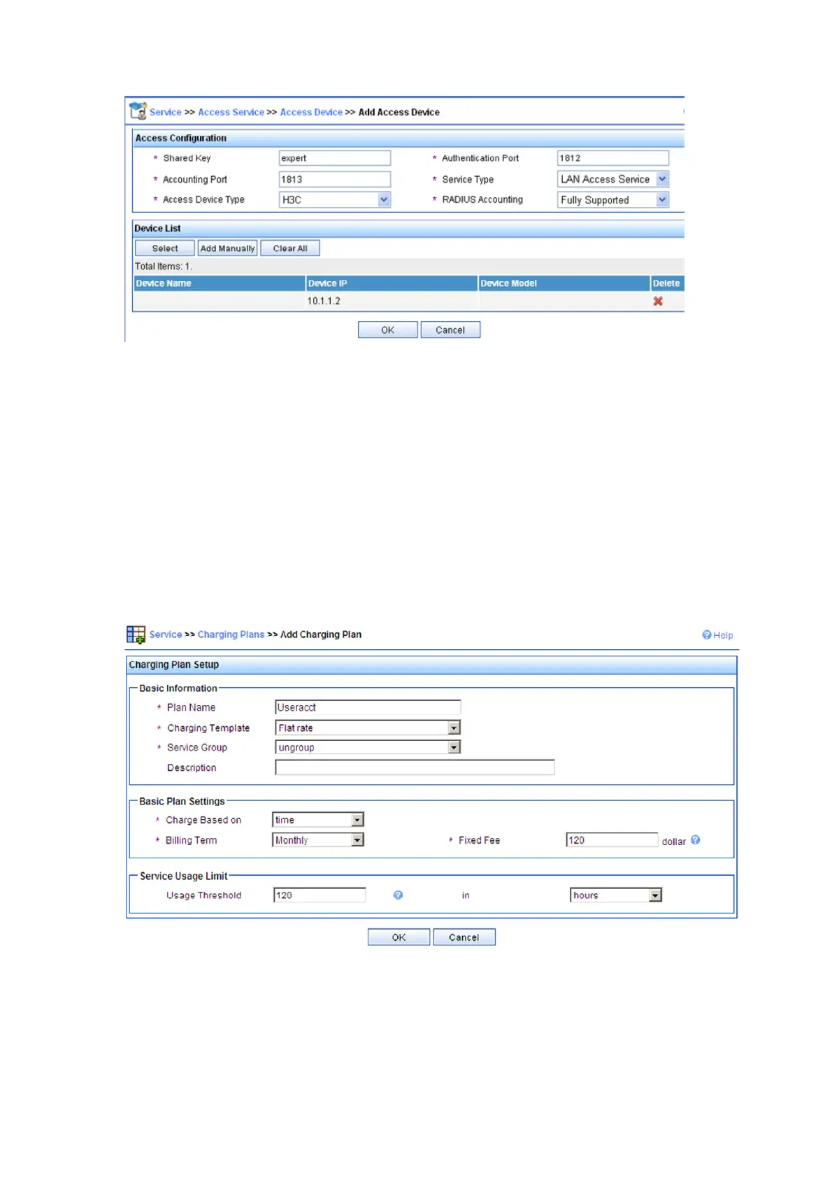 Select the Service tab, and select Charging Service > Charging Plans from the navigation tree to