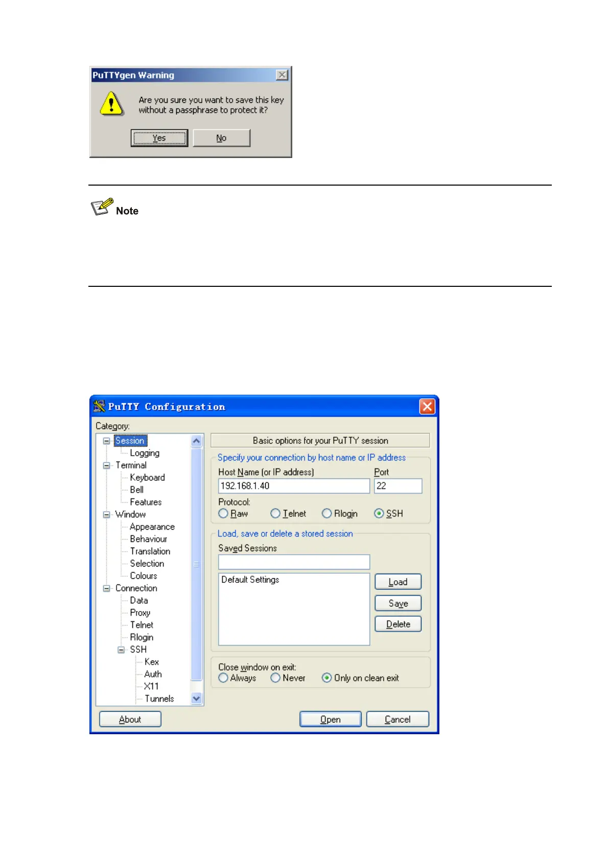 Launch PuTTY.exe to enter the following interface. In the Host Name (or IP address) text box, enter