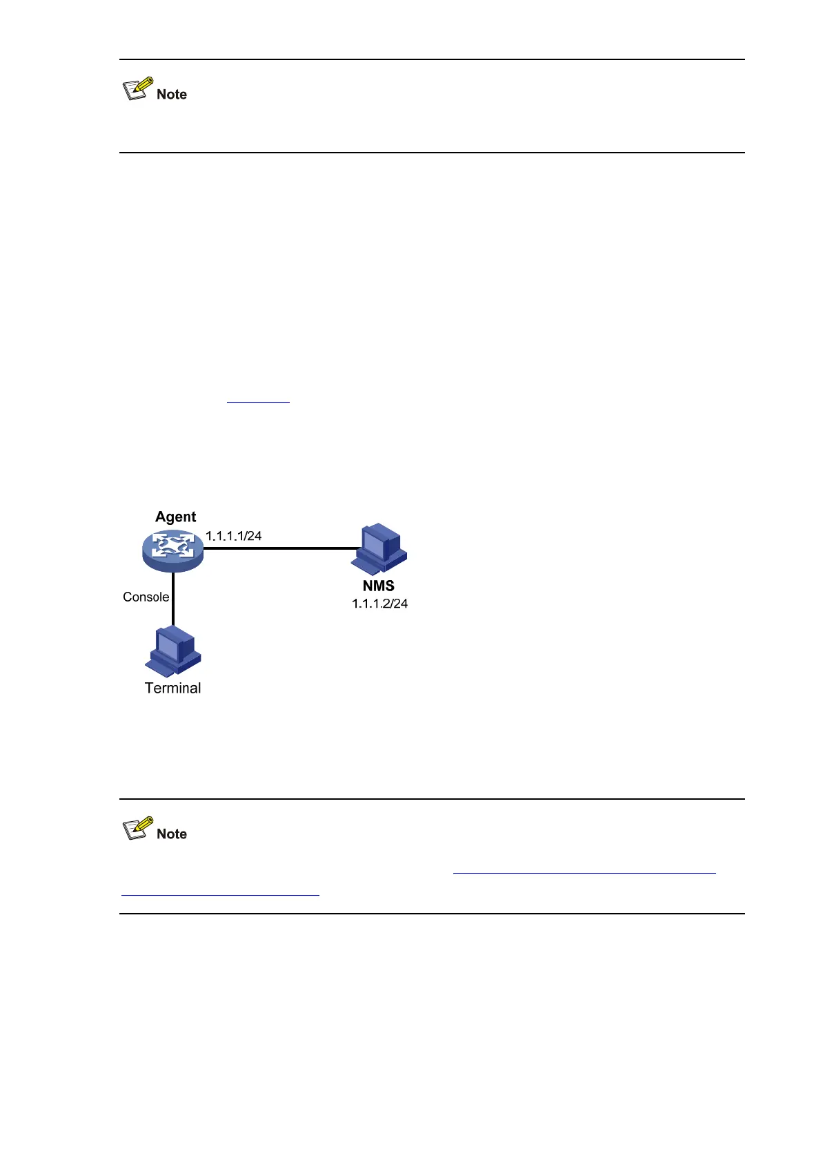 z As shown in Figure 1-5, the NMS and the agent are connected through an Ethernet.