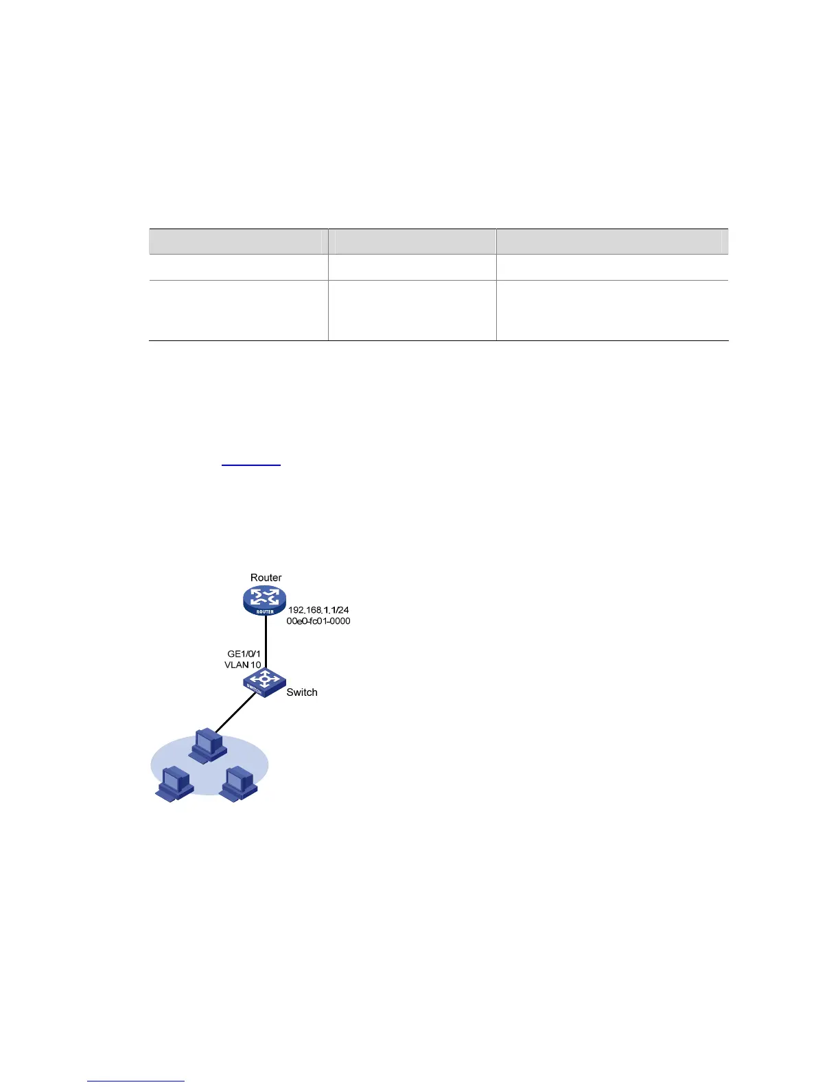 As shown in Figure 1-3, hosts are connected to Switch, which is connected to Router through interface