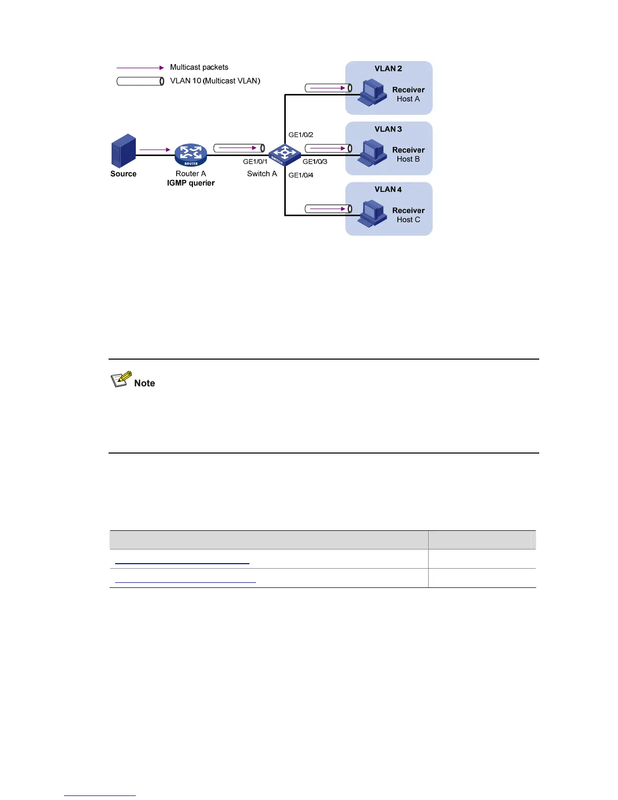 and Switch A distributes the traffic to all the member ports in the multicast VLAN.