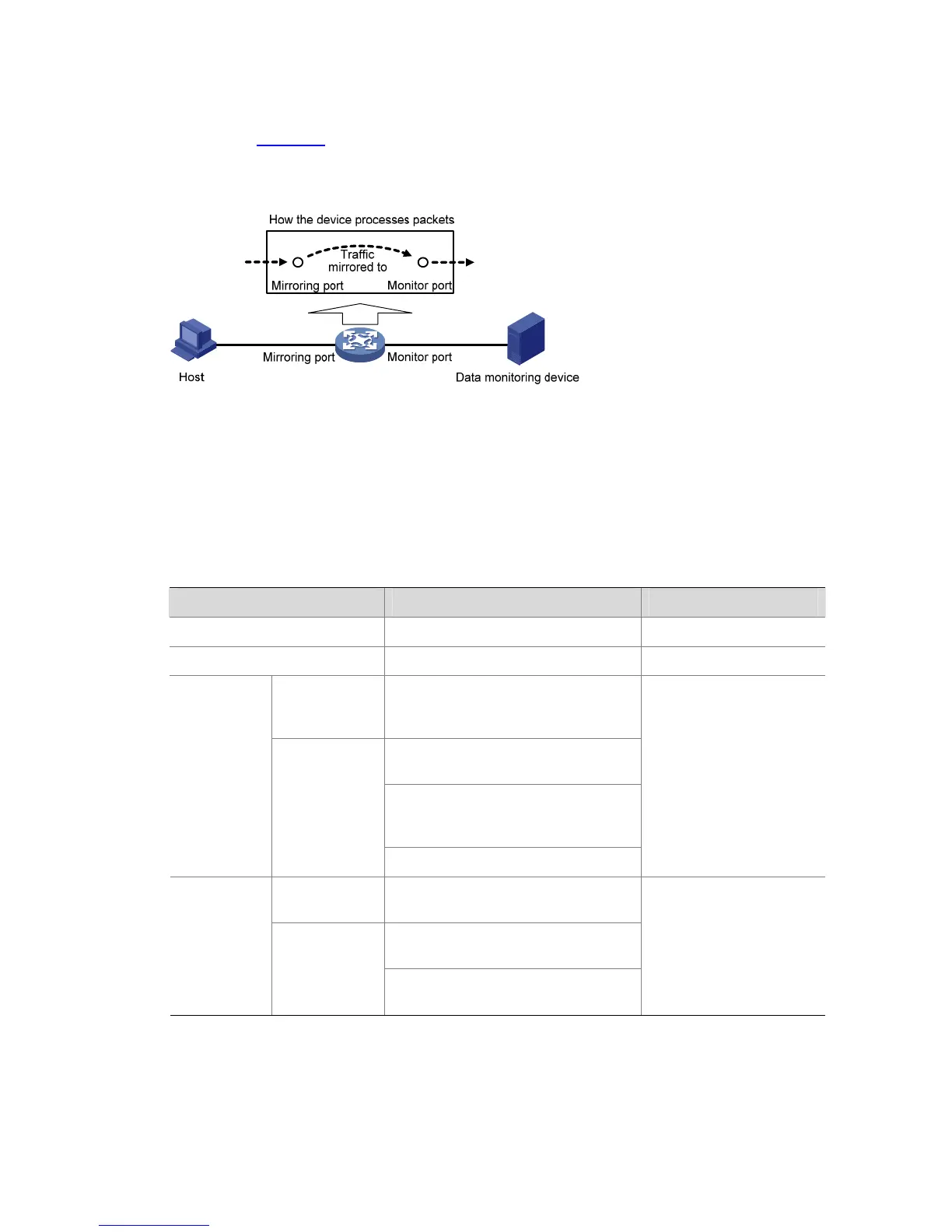 Figure 1-1, packets on the mirroring port are mirrored to the monitor port for the data