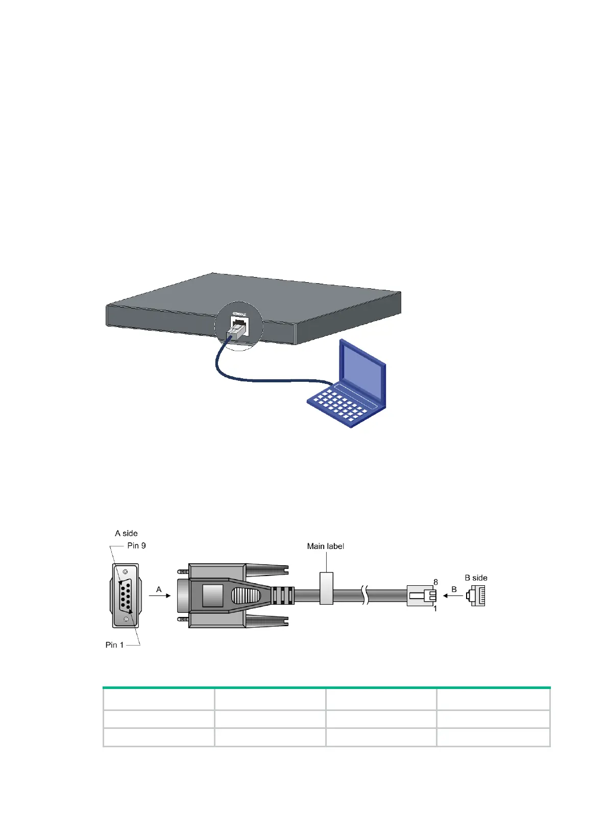 connecting to the serial console port of the switch, and a DB-9 female connector at the other end for