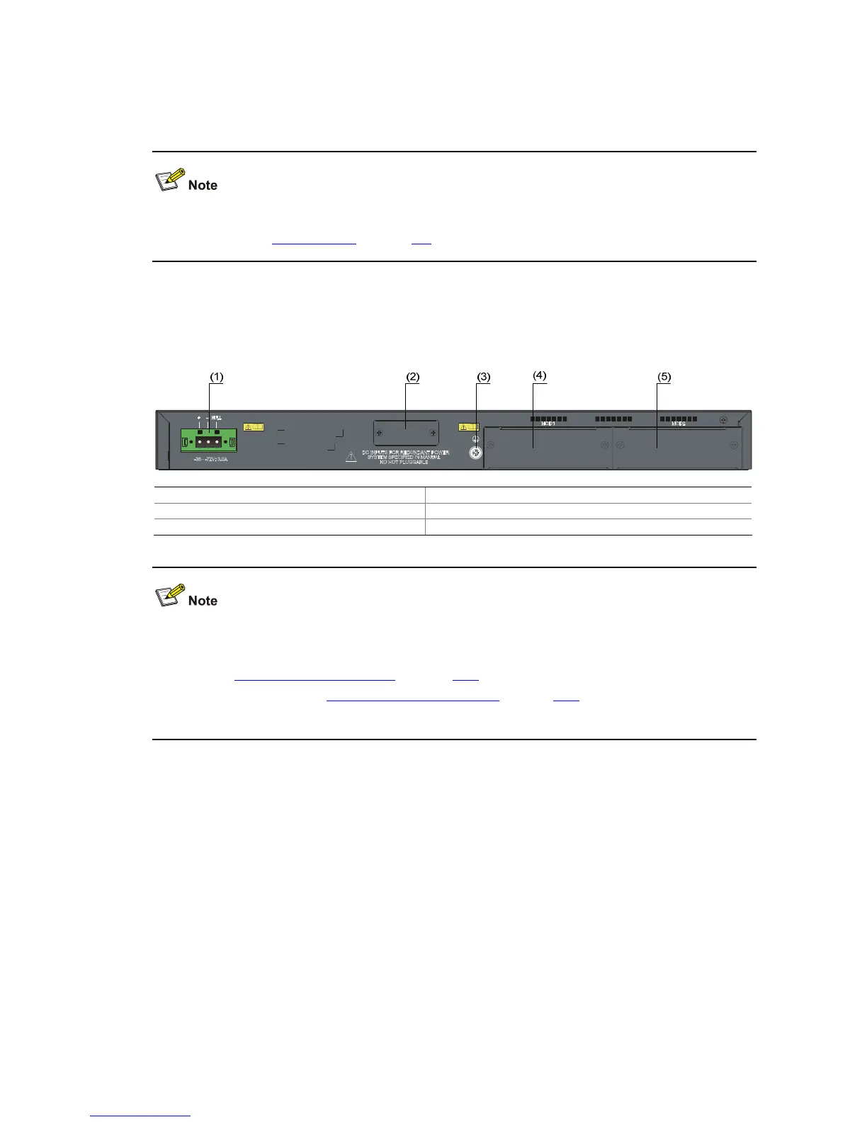 (1) -48V DC power input (2) RPS power input (shipped with a protective cover)
