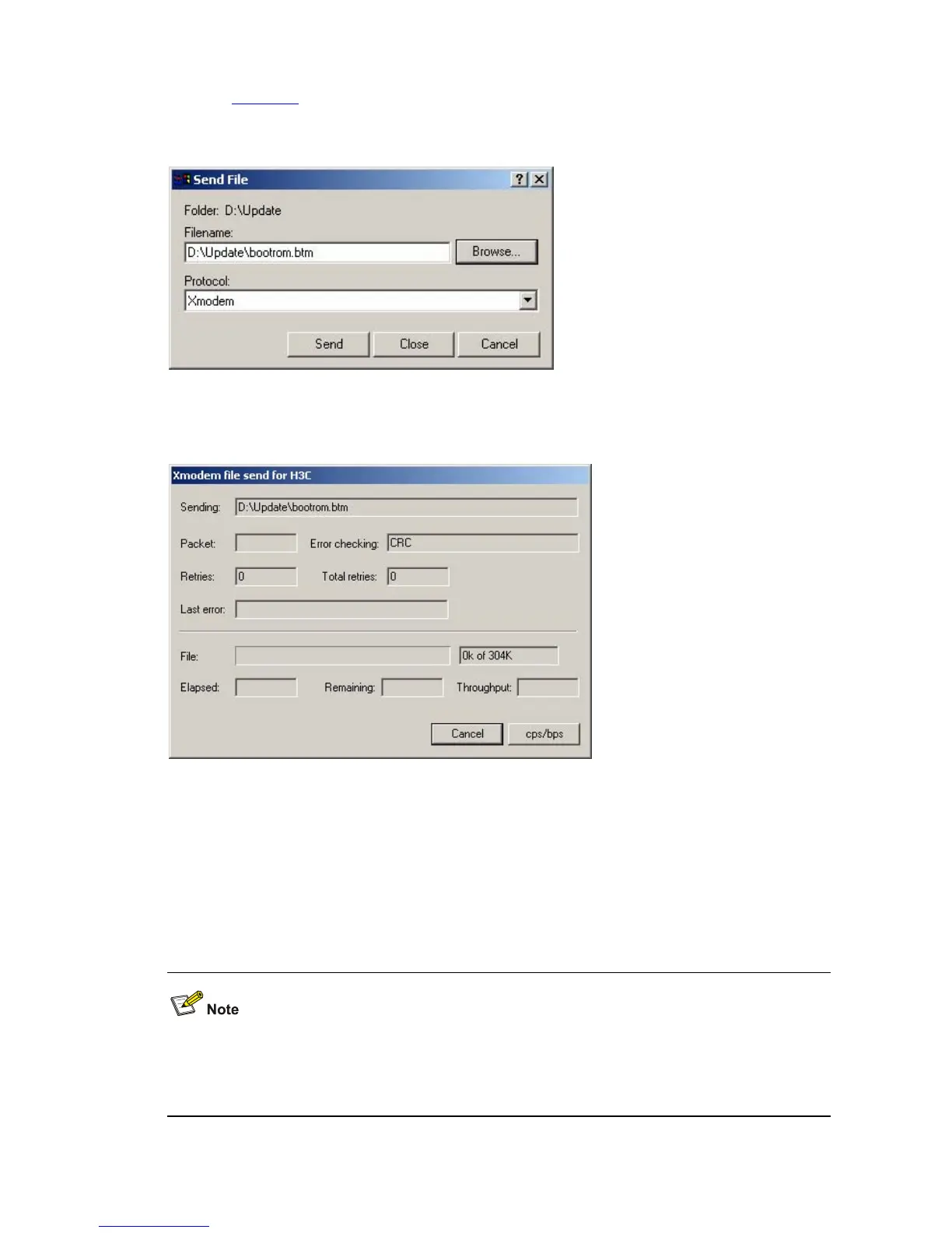 9600 bps. In this case, the system returns to the Boot ROM update menu directly instead of displaying
