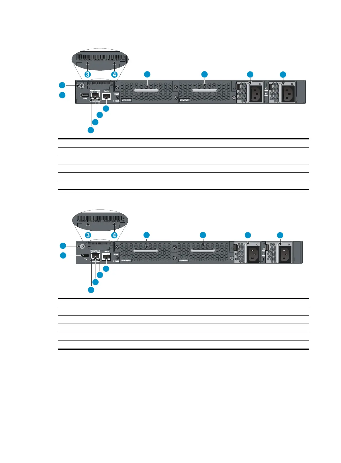 (5) Fan tray slot 1 (6) Fan tray slot 2