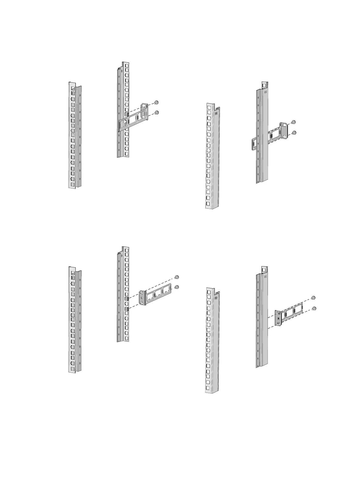 Figure 11 Attaching the rear mounting brackets to the rack with the wide flange inside the