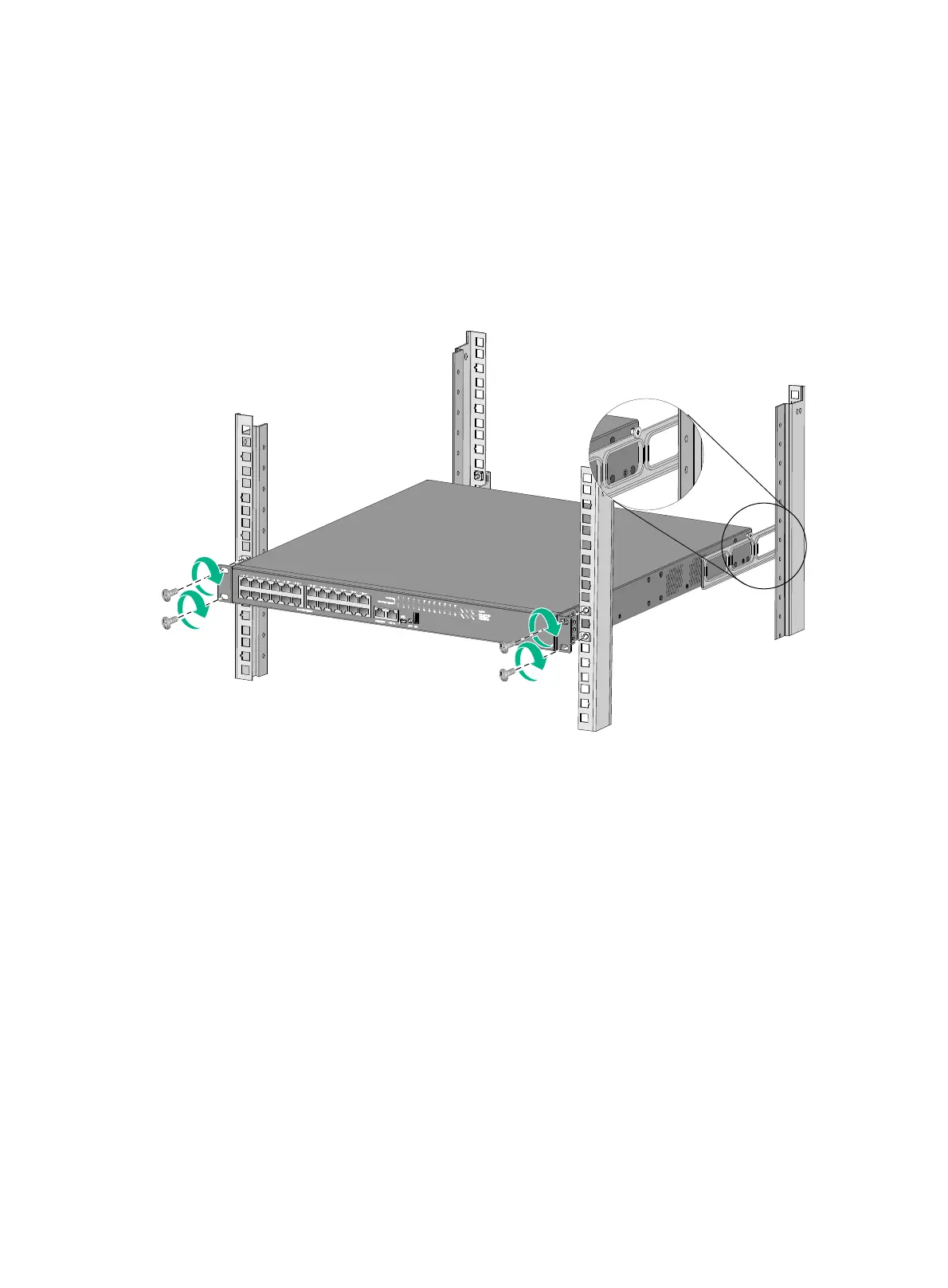 front rack posts. Make sure the switch is installed securely in the rack. See Figure 13 and Figure