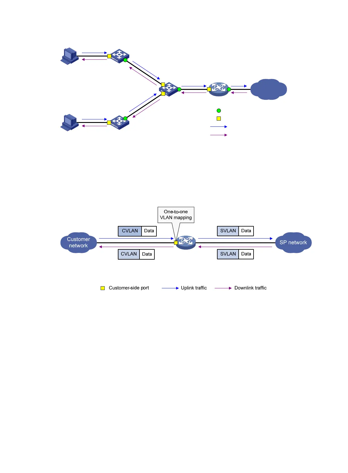 As shown in Figure 5, many-to-one VLAN mapping is implemented on both the customer-side and