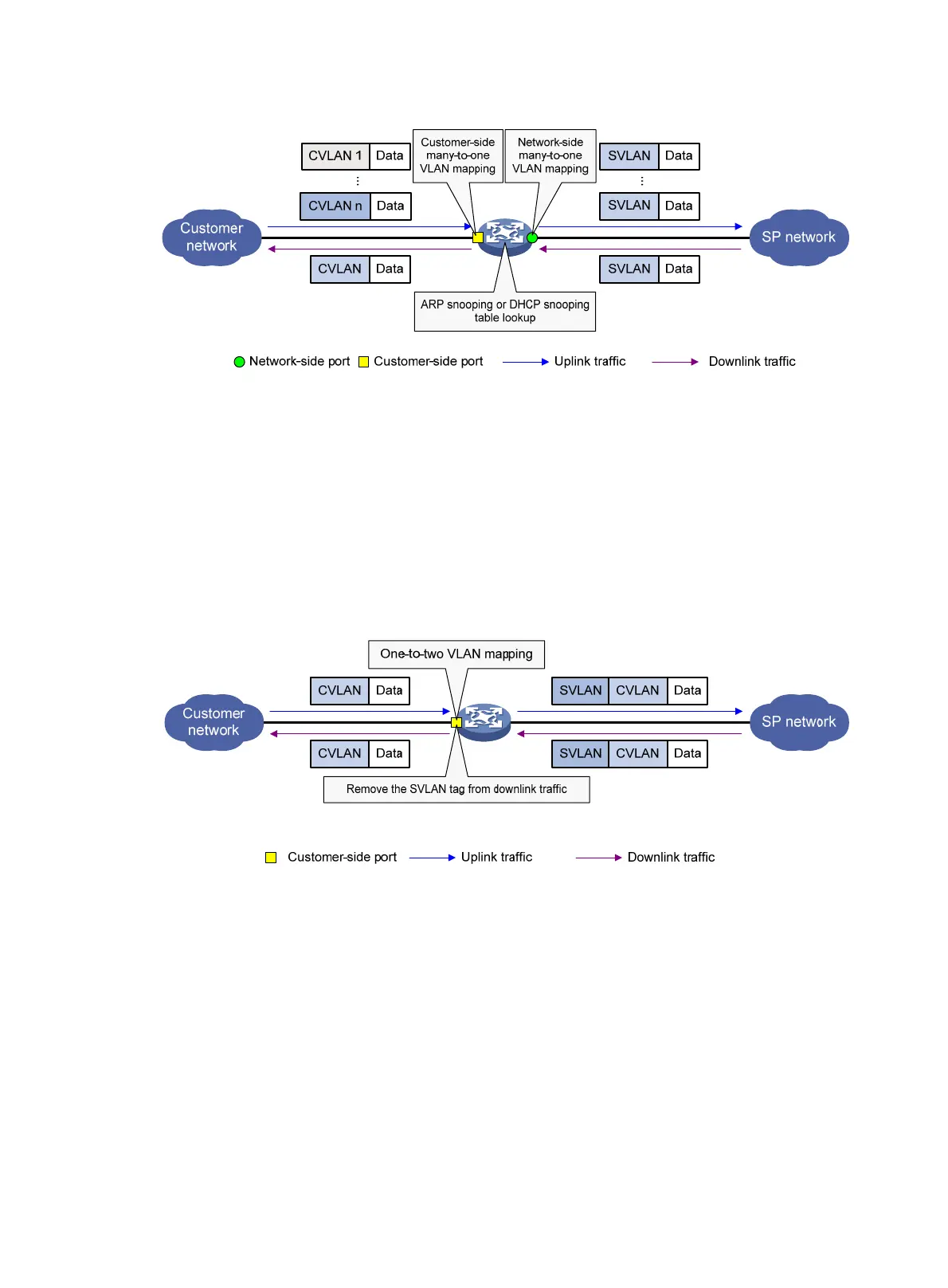 As shown in Figure 7, two-to-two VLAN mapping is implemented on the customer-side port and