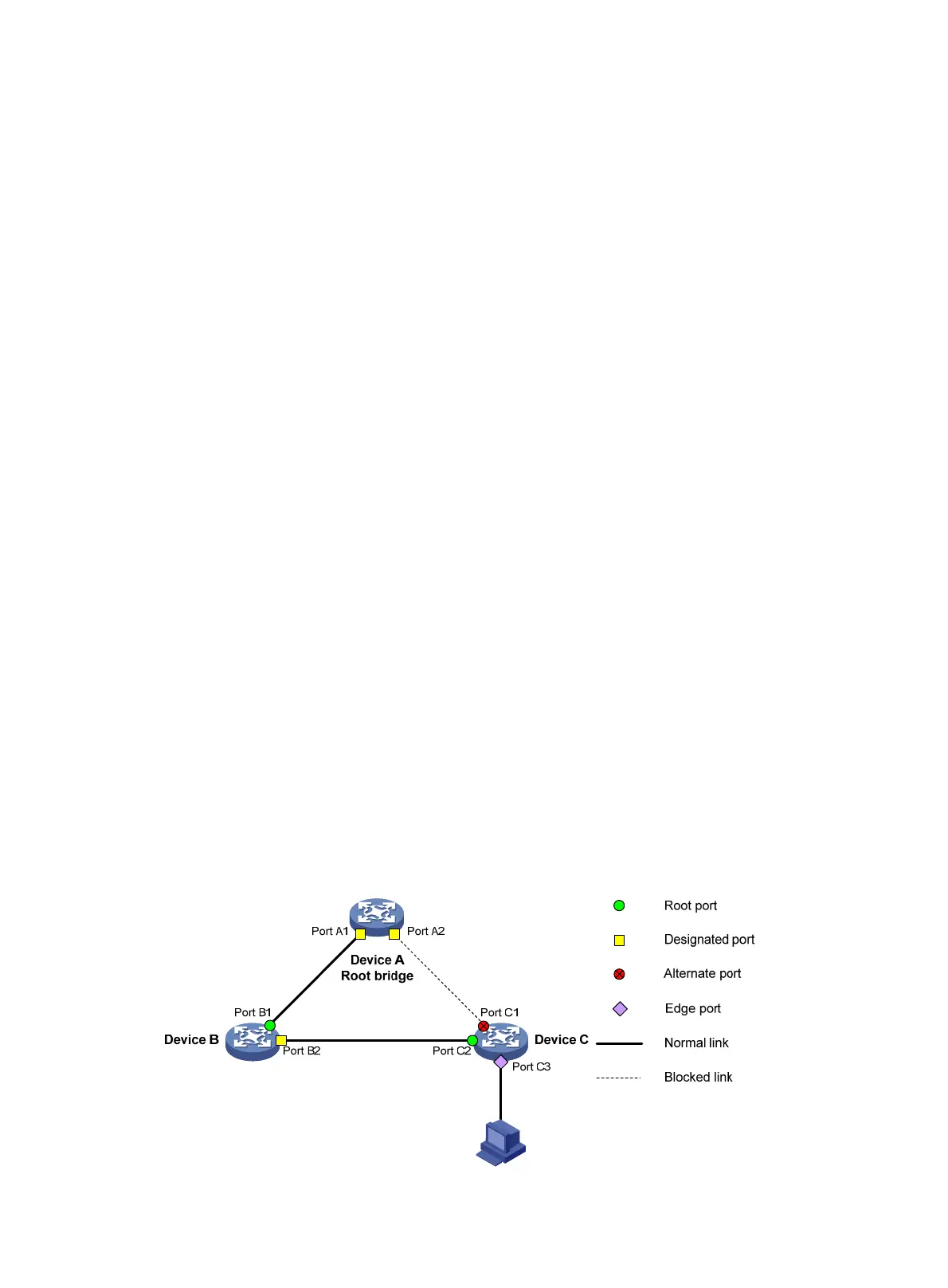 As shown in Figure 12, Port C3 is an edge port connected to a host. When a network topology