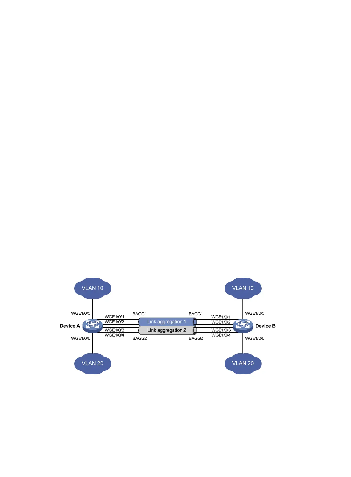 • Configure link aggregation groups 1 and 2 to load share traffic across aggregation group