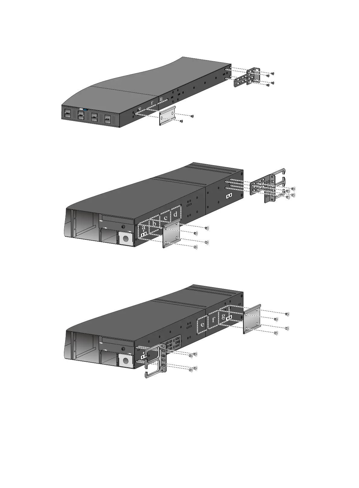 Figure 31 Attaching the mounting brackets and chassis rails to the S9850-4C switch (power