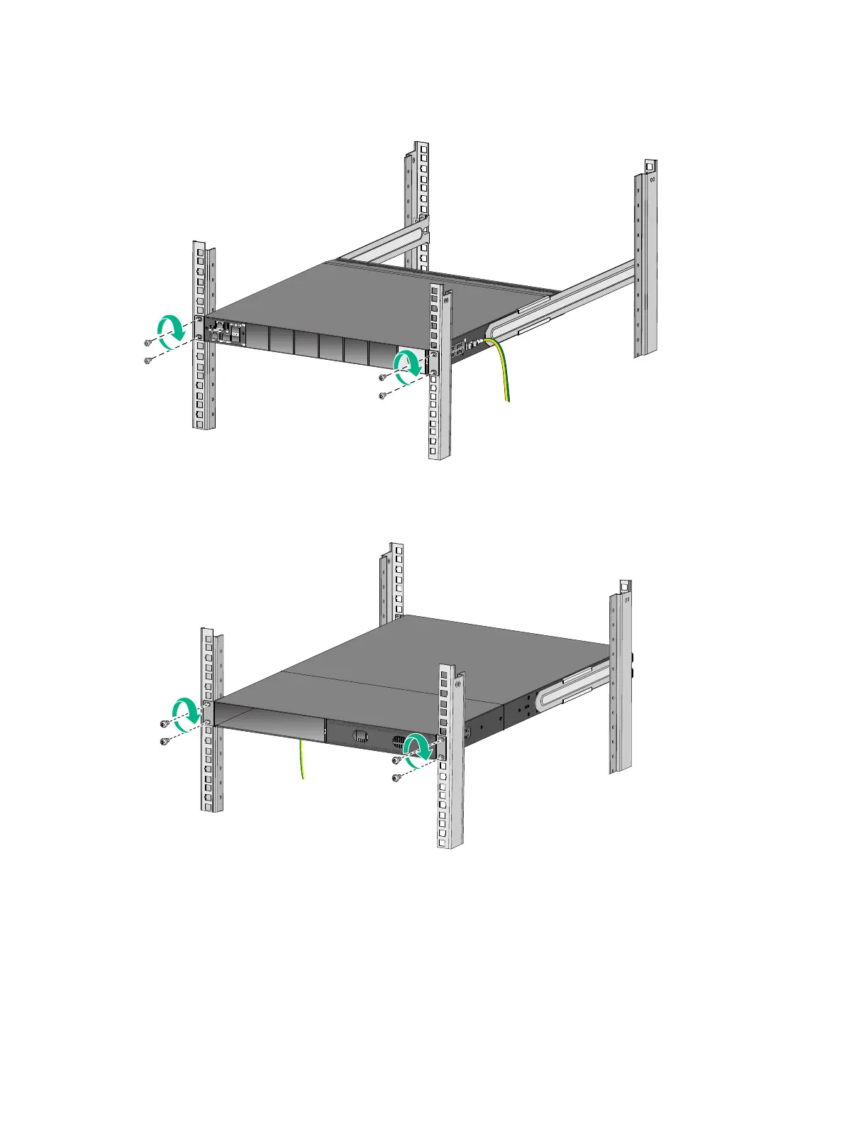 Figure 38 Mounting the S6850-56HF switch in the rack (power module-side mounting