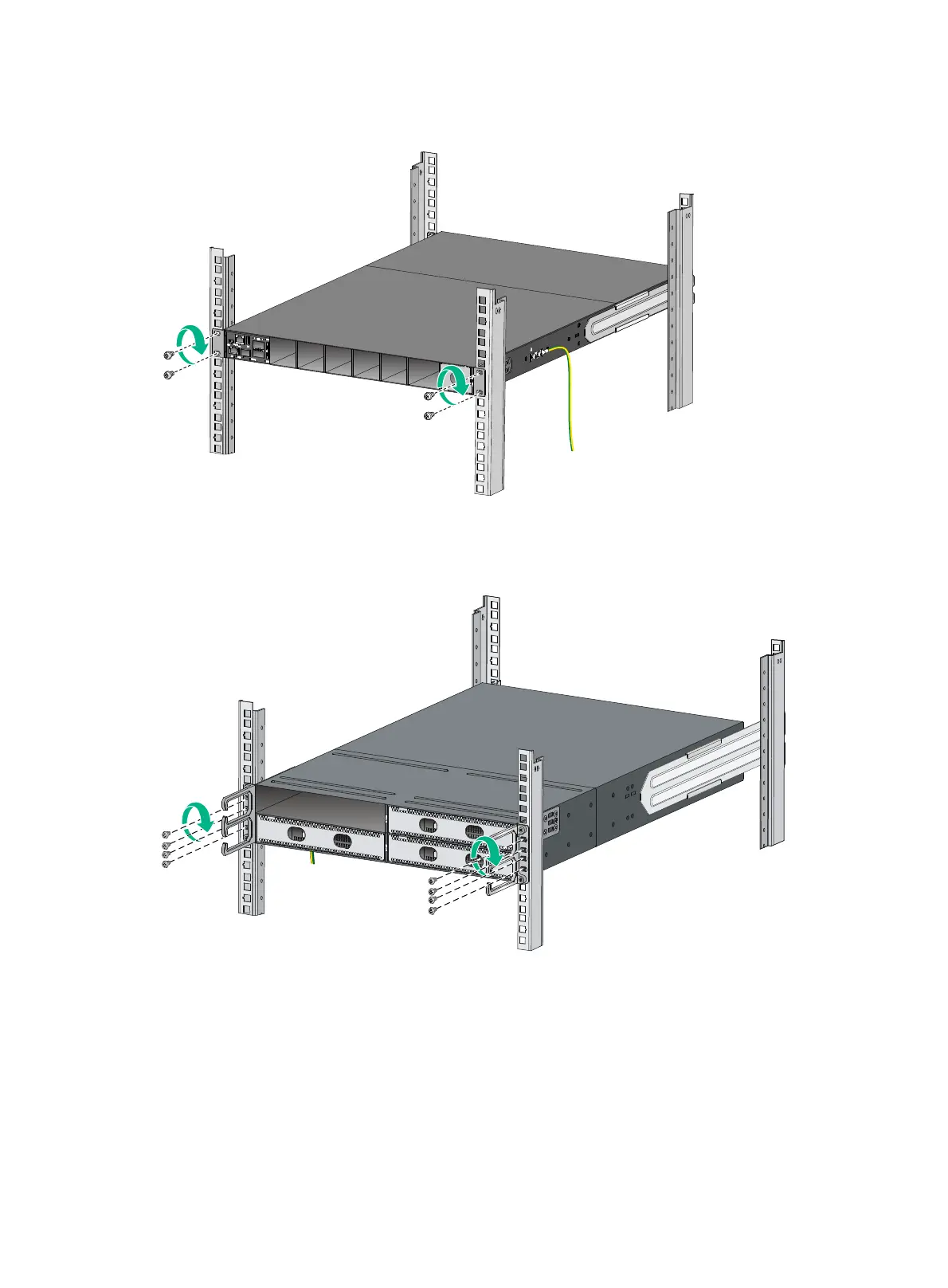 Figure 41 Mounting the S9850-4C switch in the rack (port-side mounting position for the