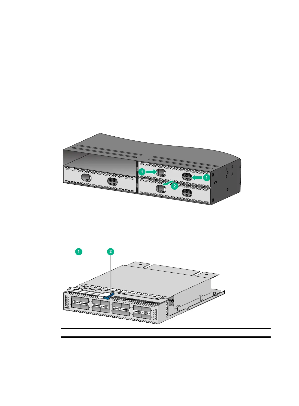 5. Insert the expansion module slowly into the slot along the guide rails, as shown by callout 1