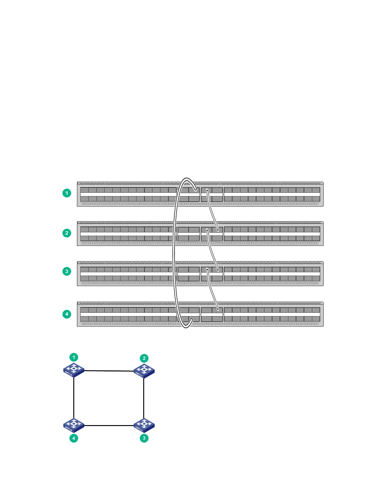Figure 69 shows an example for connecting four IRF member switches in a rack. The switches in the