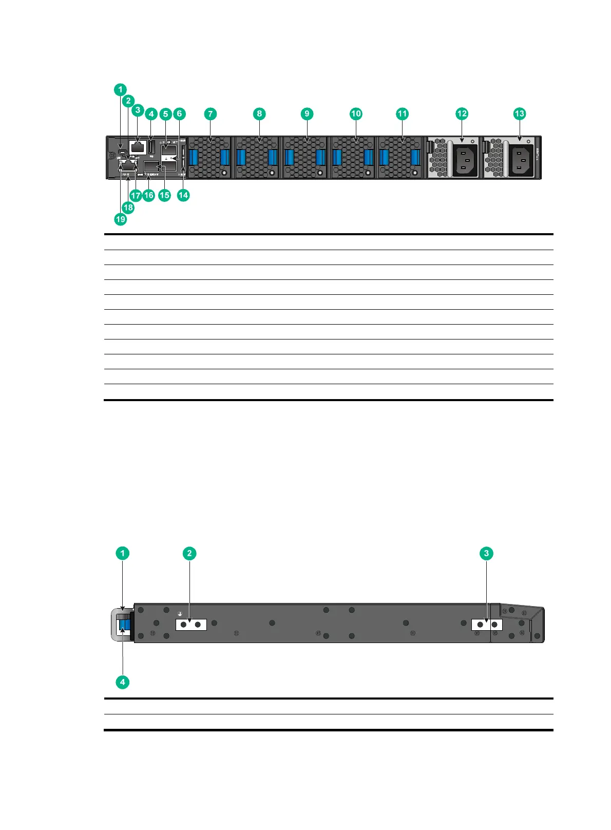 (1) Mini USB console port (2) Copper management Ethernet port