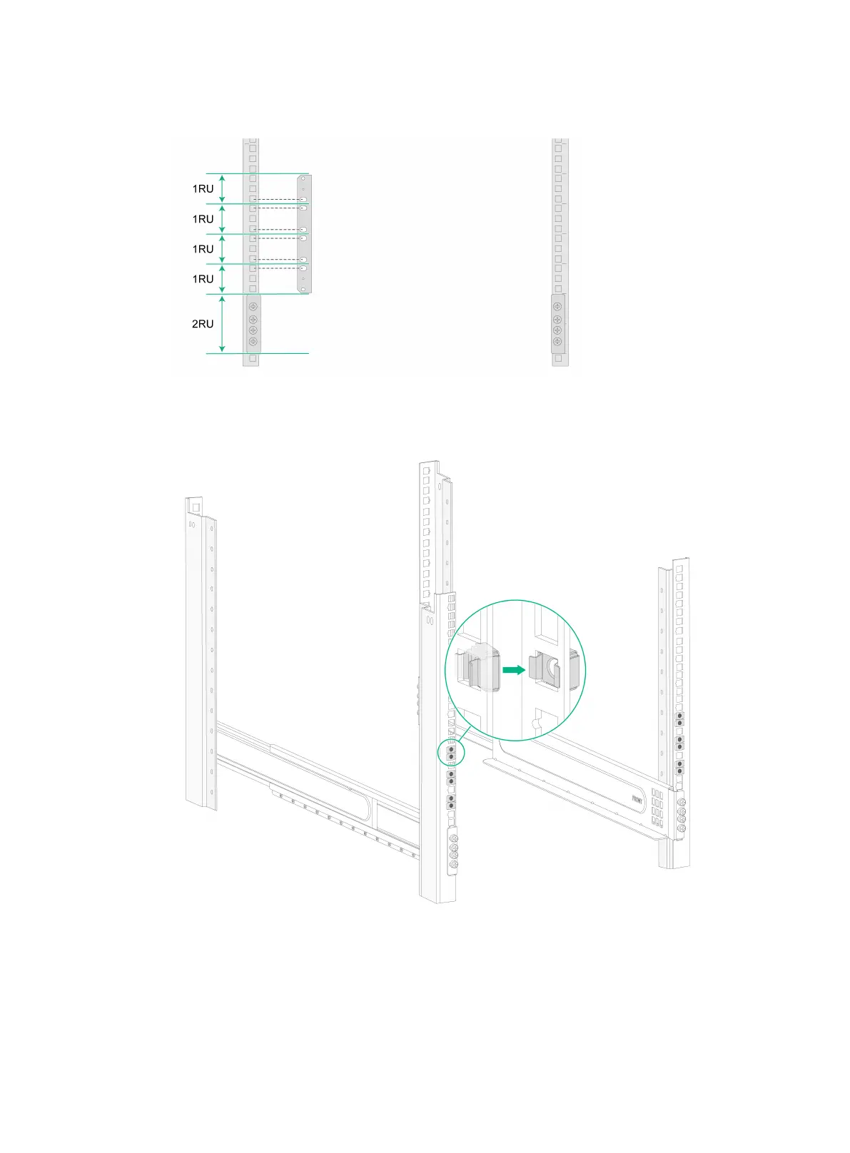 1. Use the mounting brackets to mark the cage nut installation holes on the front rack post.