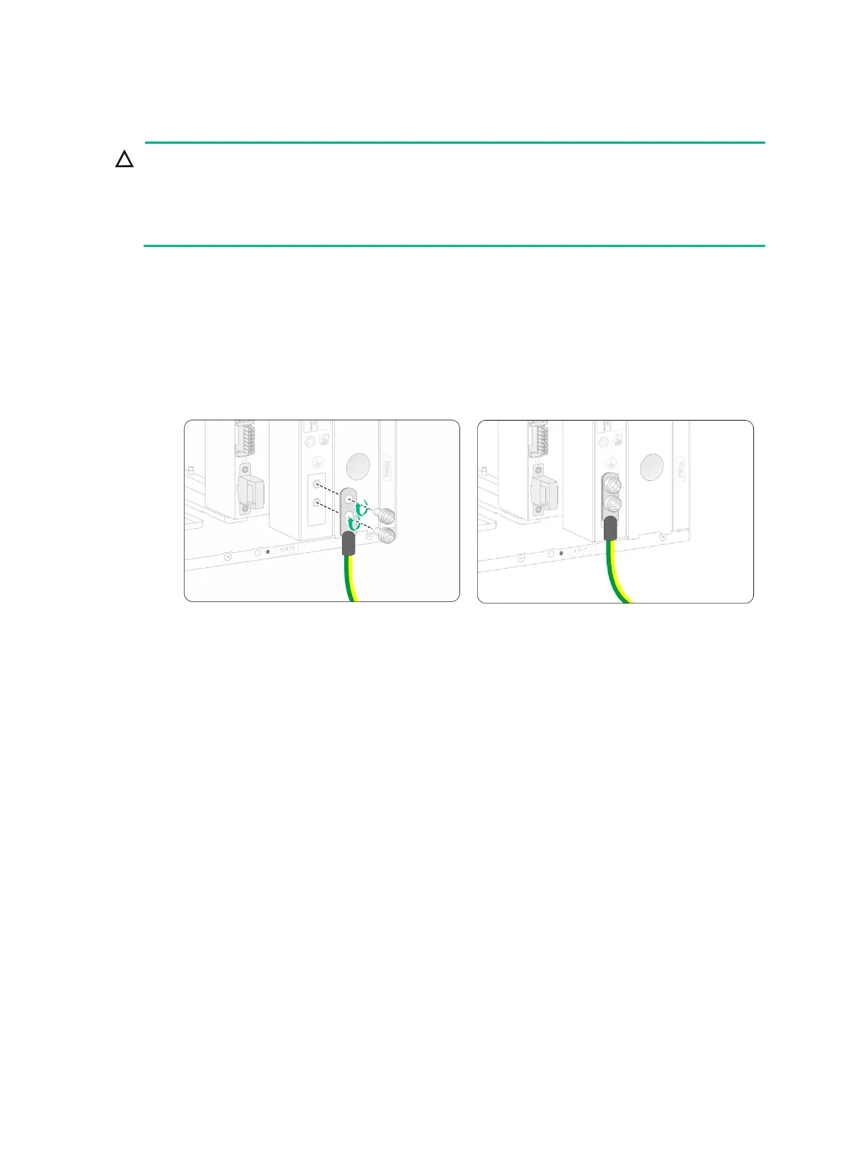 Connect the grounding cable to the earthing system in the equipment room. Do not connect it to