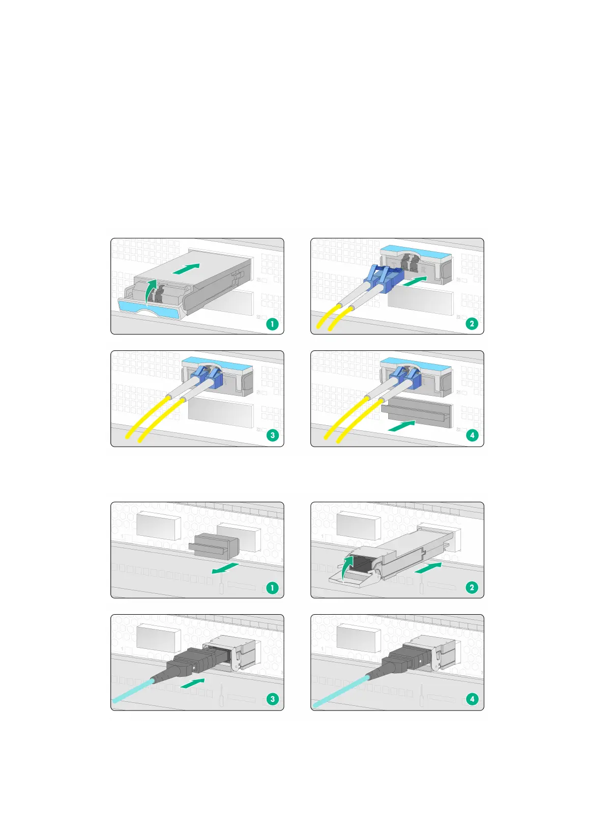 LC connector—Align the connector with the transceiver module and push it into the