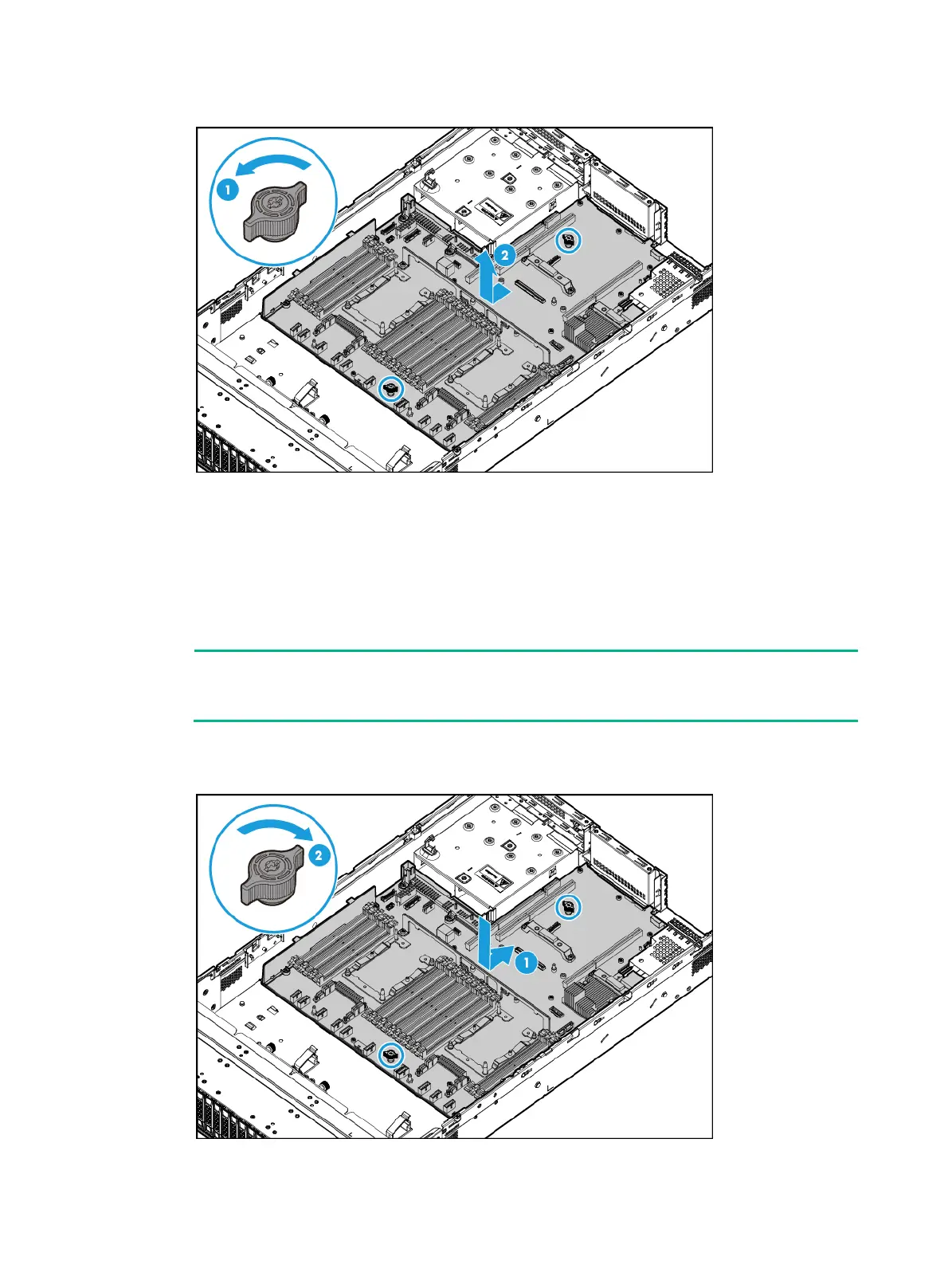 2. Fasten the two captive screws on the system board, as shown by callout 2 in Figure 149.