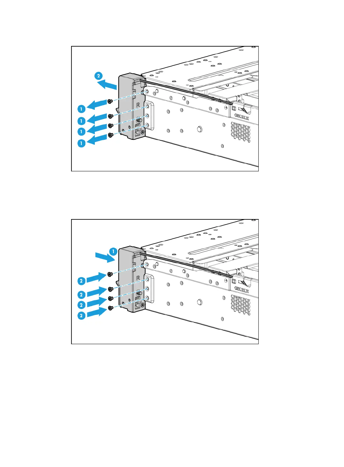 1. Attach the right chassis ear to the right side of the server, and use screws to secure it into place,