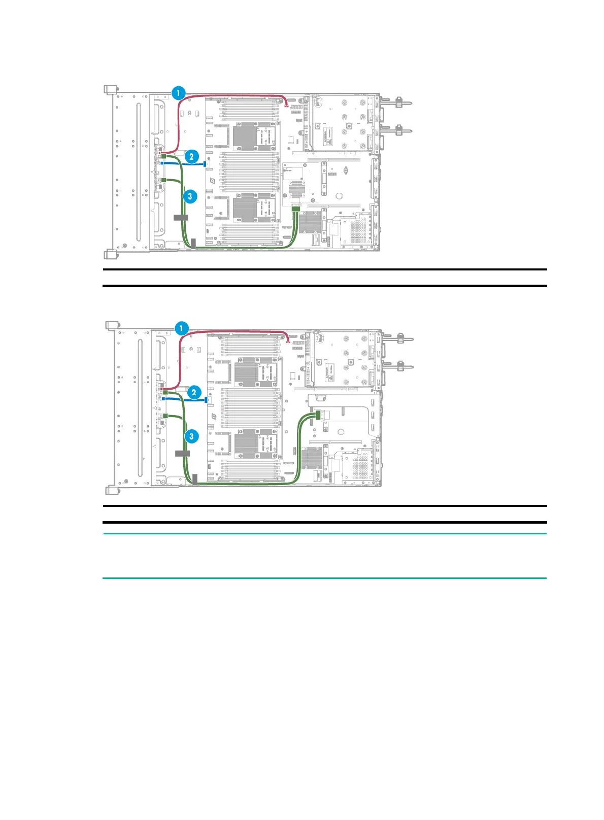 The cabling method is the same for standard storage controllers in PCIe slots 2 and 6 of riser cards.