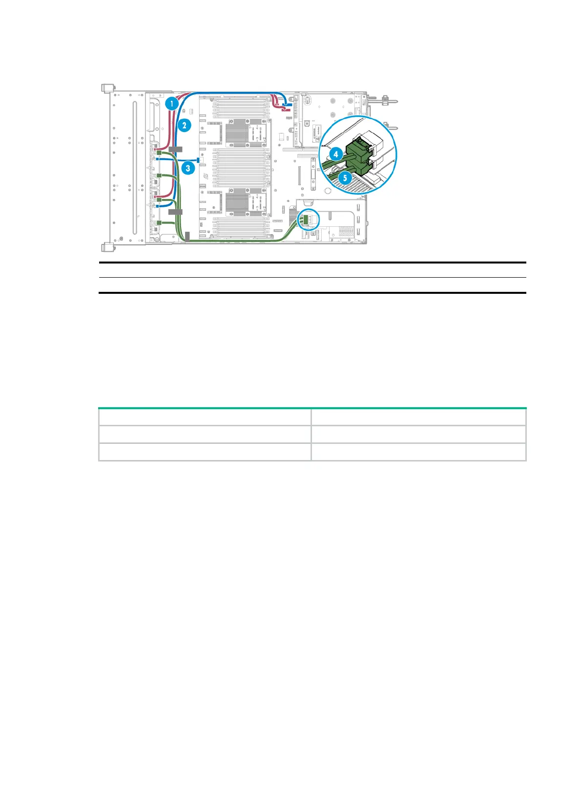 (4) SAS/SATA data cable 1 (for drive cage bay 2) (5) SAS/SATA data cable 2 (for drive cage bay 3)