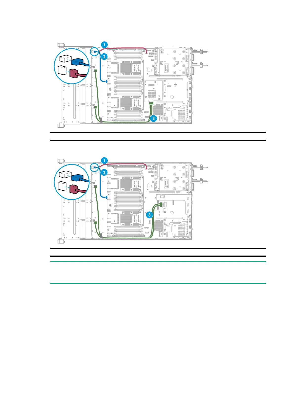 The cabling method is the same for standard storage controllers in PCIe slots 2 and 6 of riser cards.
