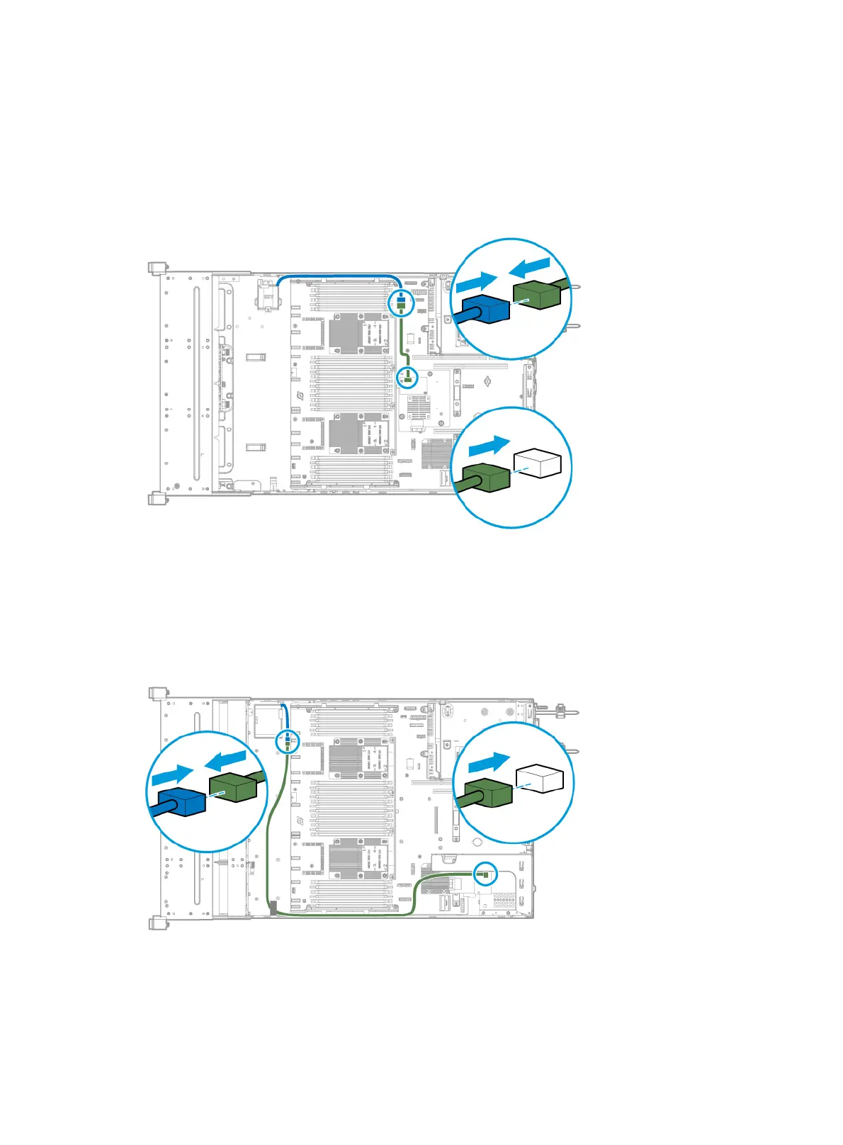 The cabling method is the same for standard storage controllers in PCIe slots 1, 2, 6, and 8. Figure