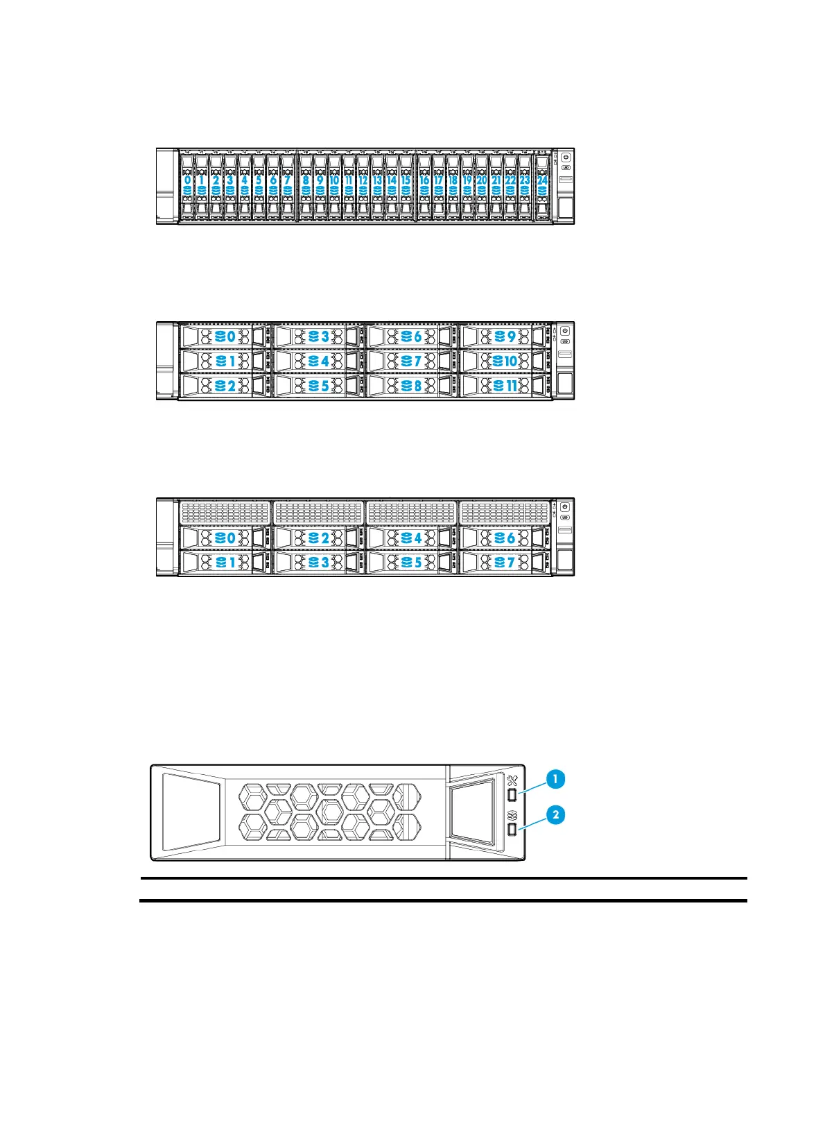 shows the location of the LEDs on a drive. Table 25 describes the status of the LEDs.