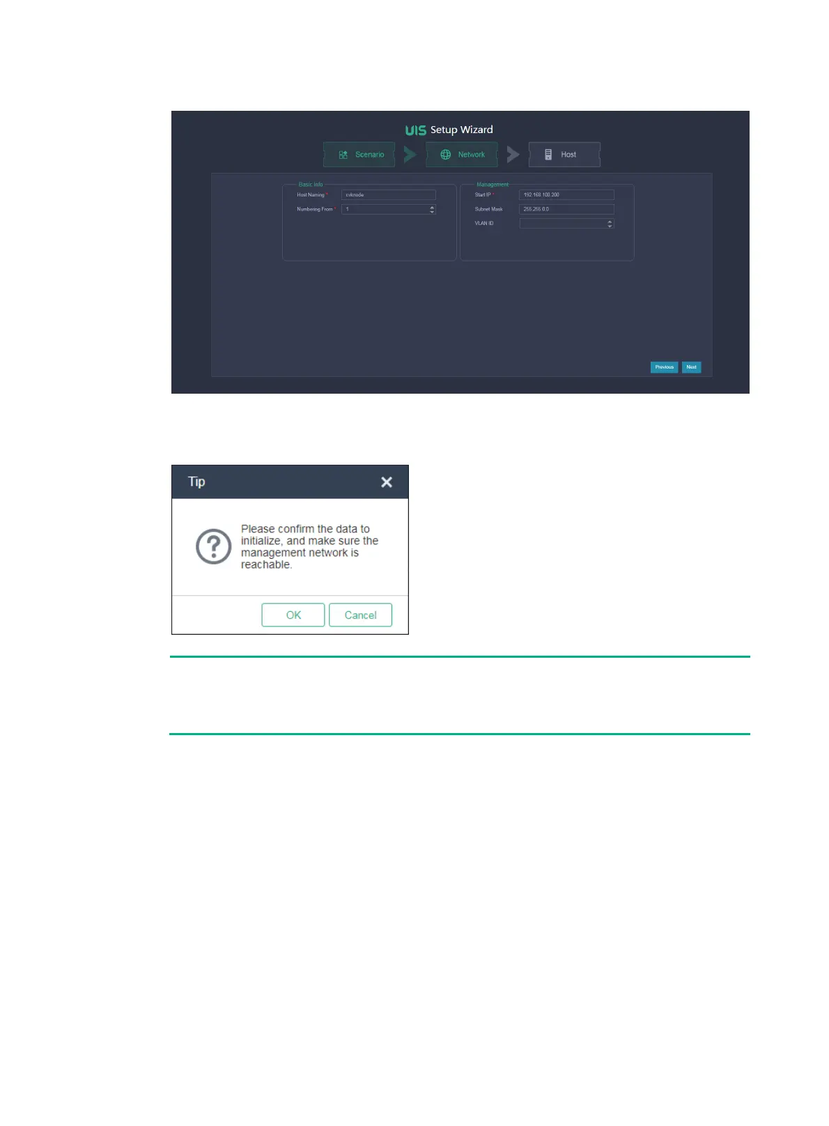 refreshes the page and opens the Hosts page by using the start IP address. At next login, you