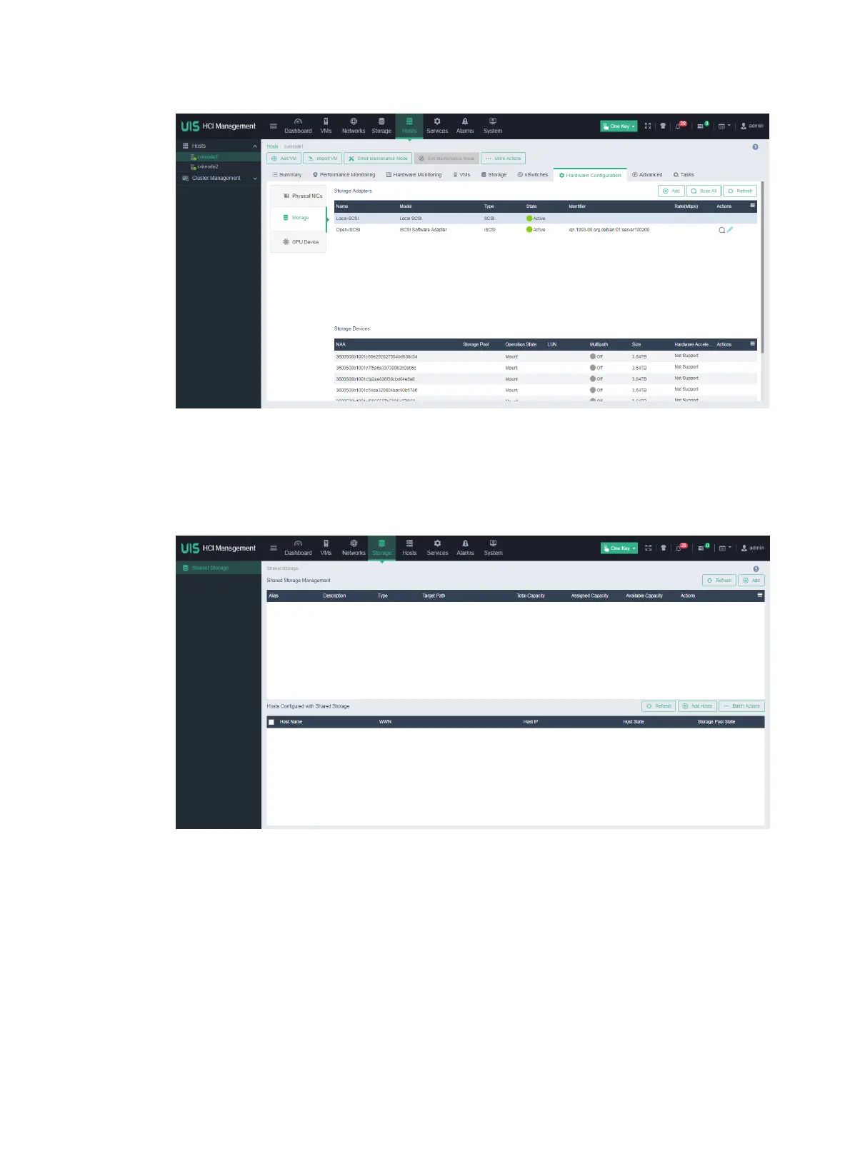 4. In UIS Manager, click Storage on the top navigation bar, and select Shared Storage from the