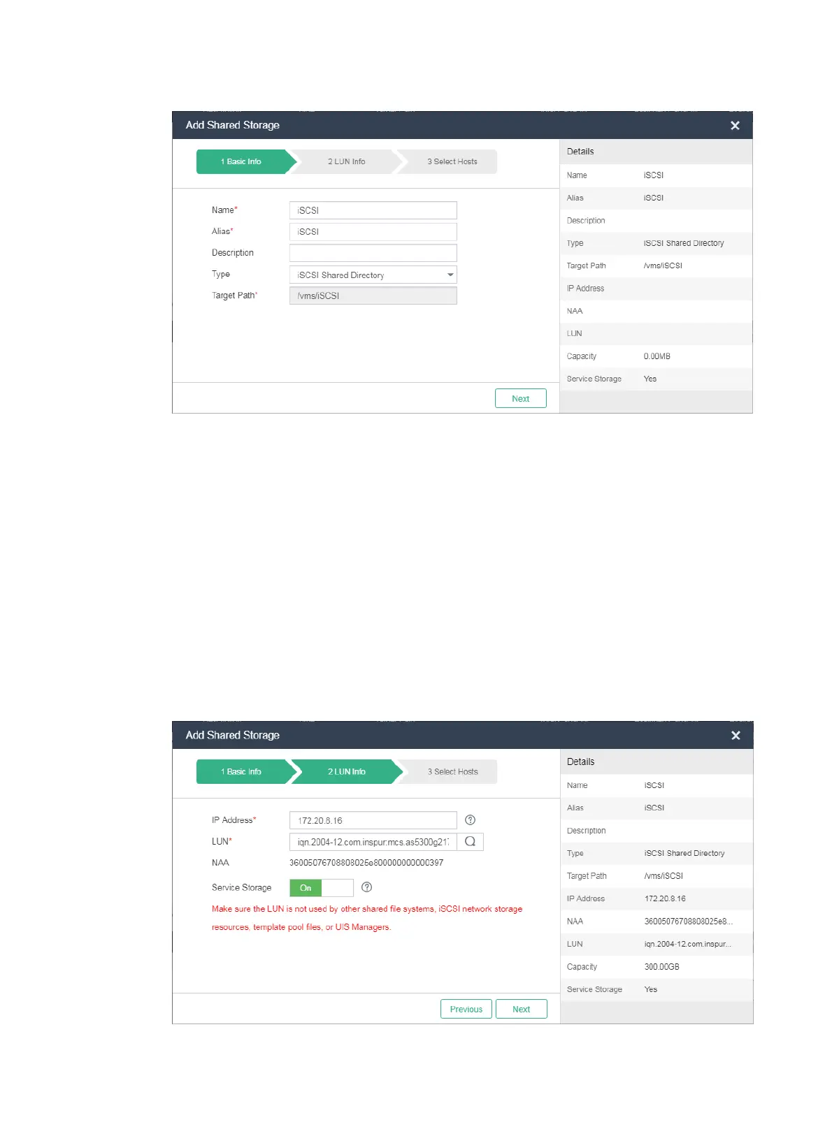 Figure 33 Configuring basic shared storage information
