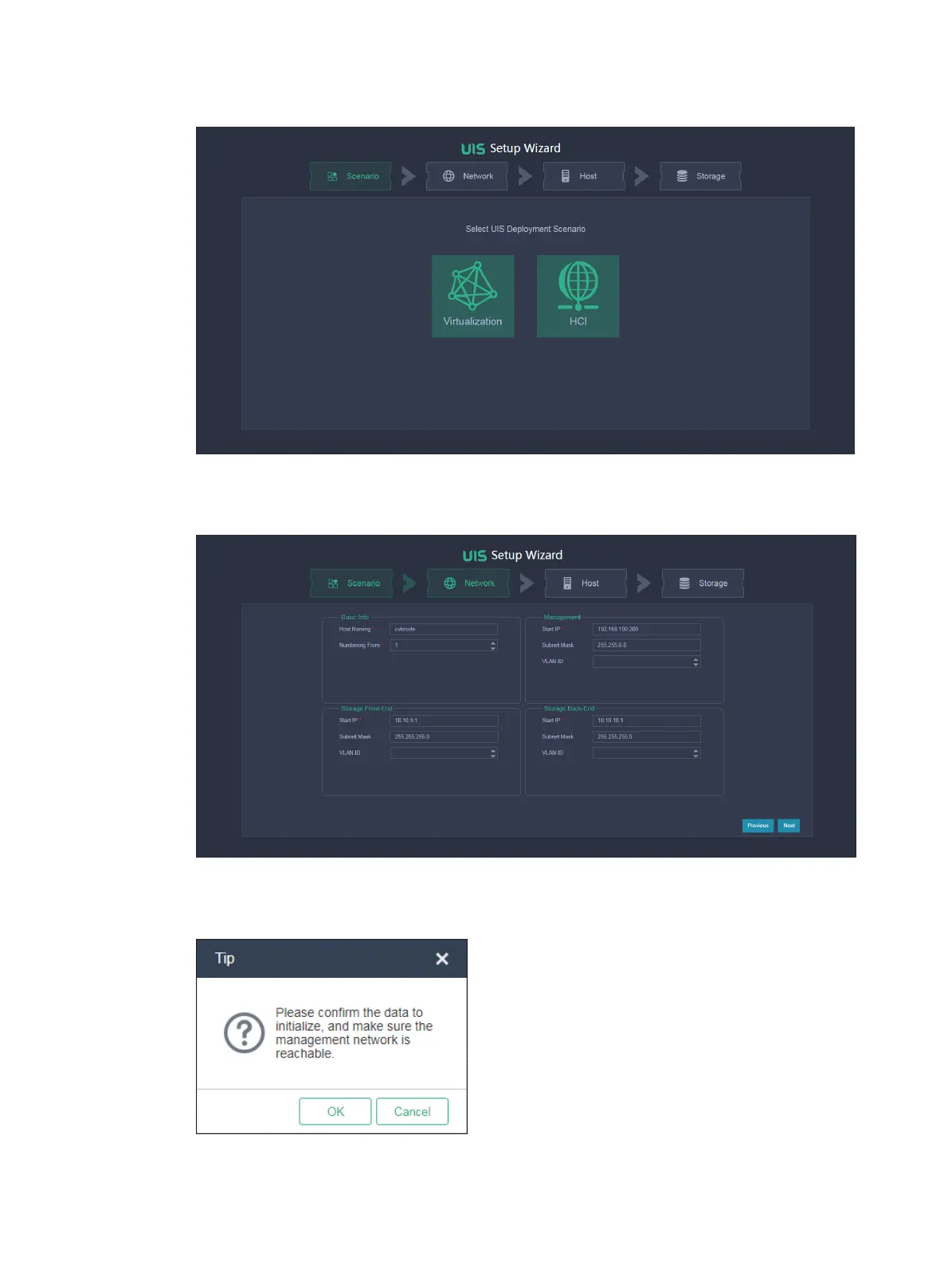 3. Configure network parameters and then click Next.