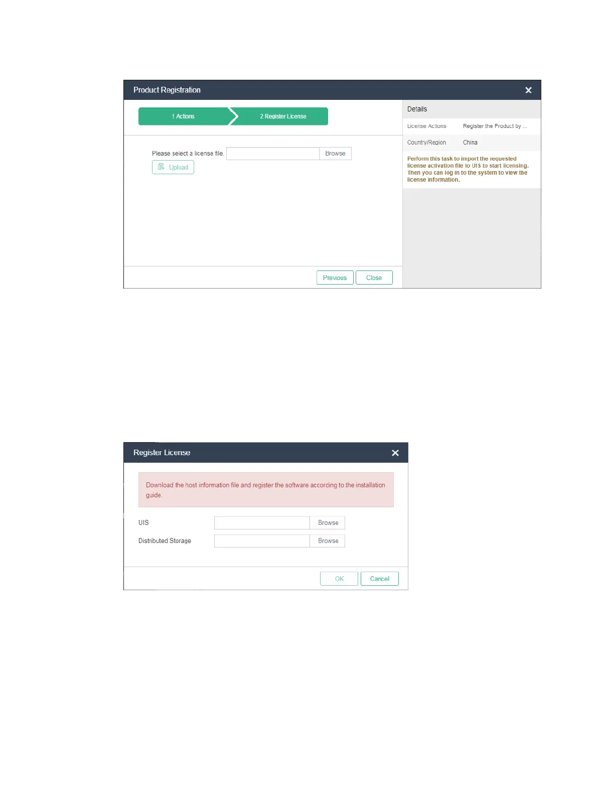 4. Click Browse to upload a distributed storage license file (.lic file).