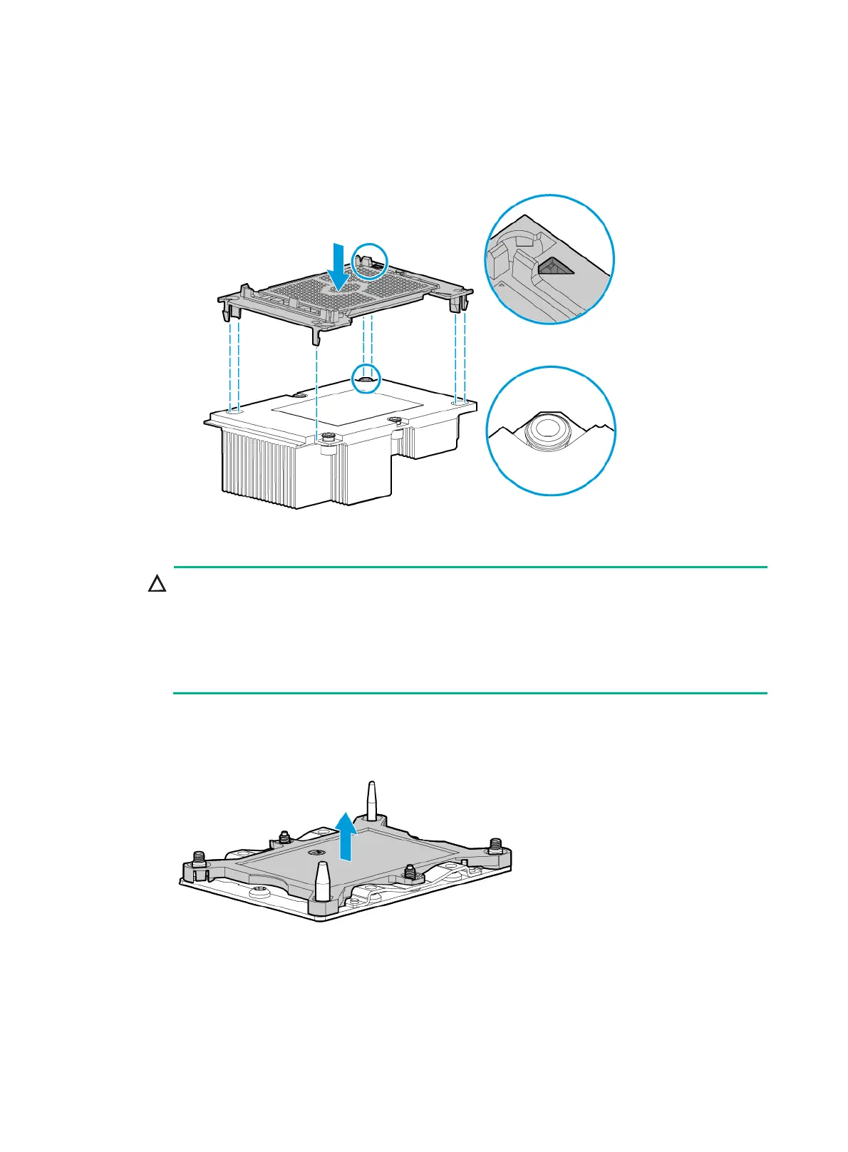 b. Install the retaining bracket onto the heatsink. As shown in Figure 112, align the alignment