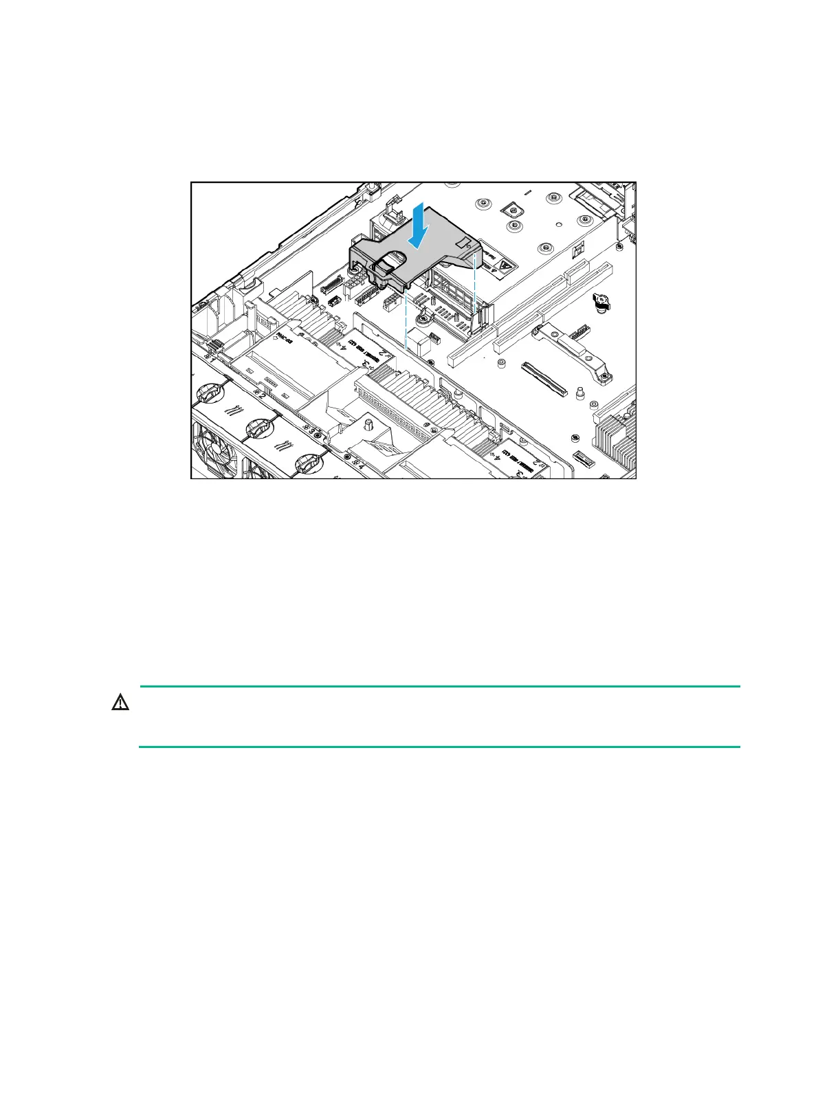 { To install the power supply air baffle, place the air baffle in the chassis as shown in Figure