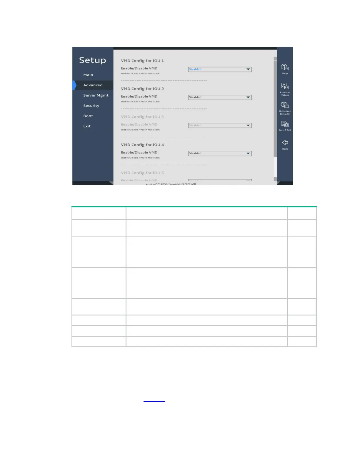 7. For VMD settings to take effect, save the settings and then restart the BIOS.