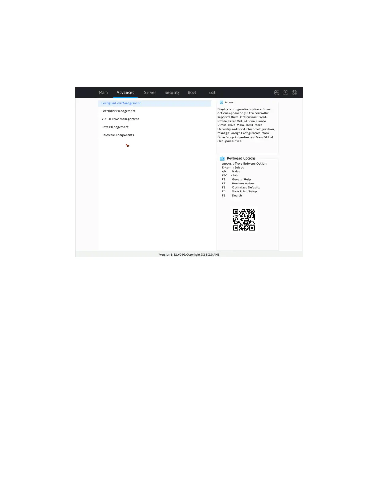 1. On the storage controller configuration screen as shown in Figure 55, select Configuration
