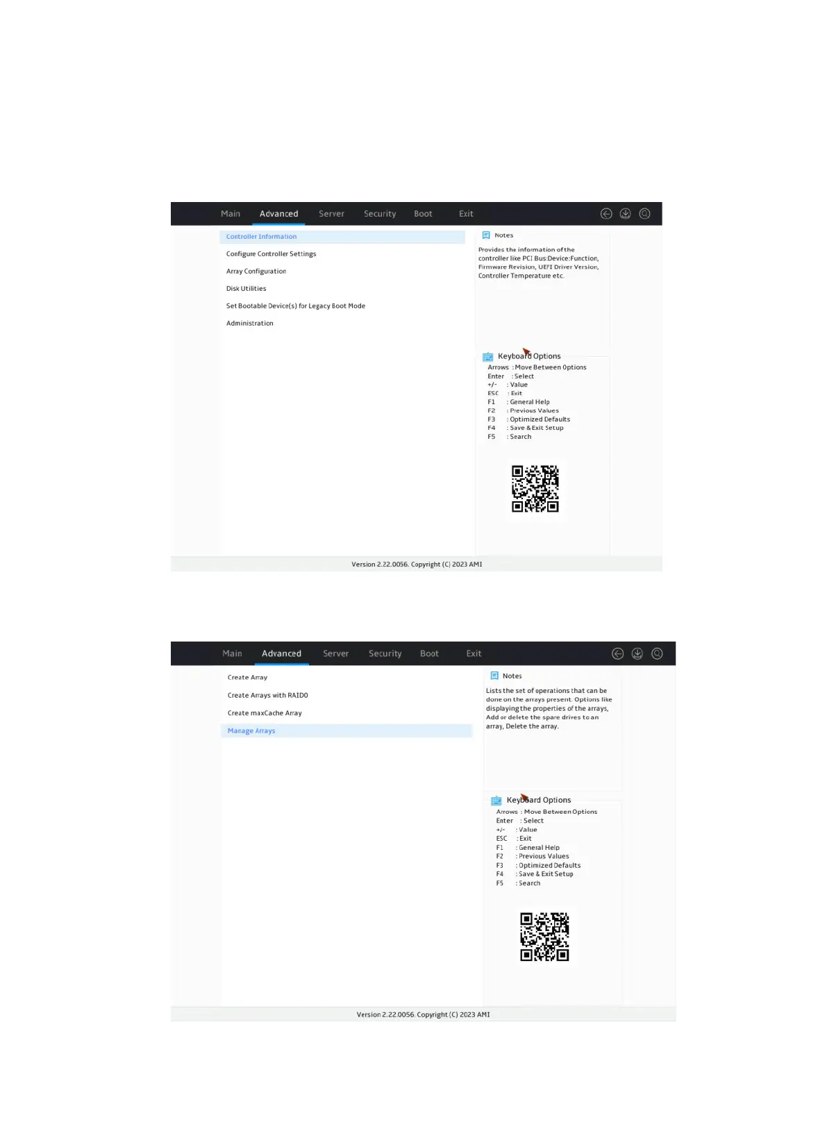 3. Select Manage Arrays and press Enter.