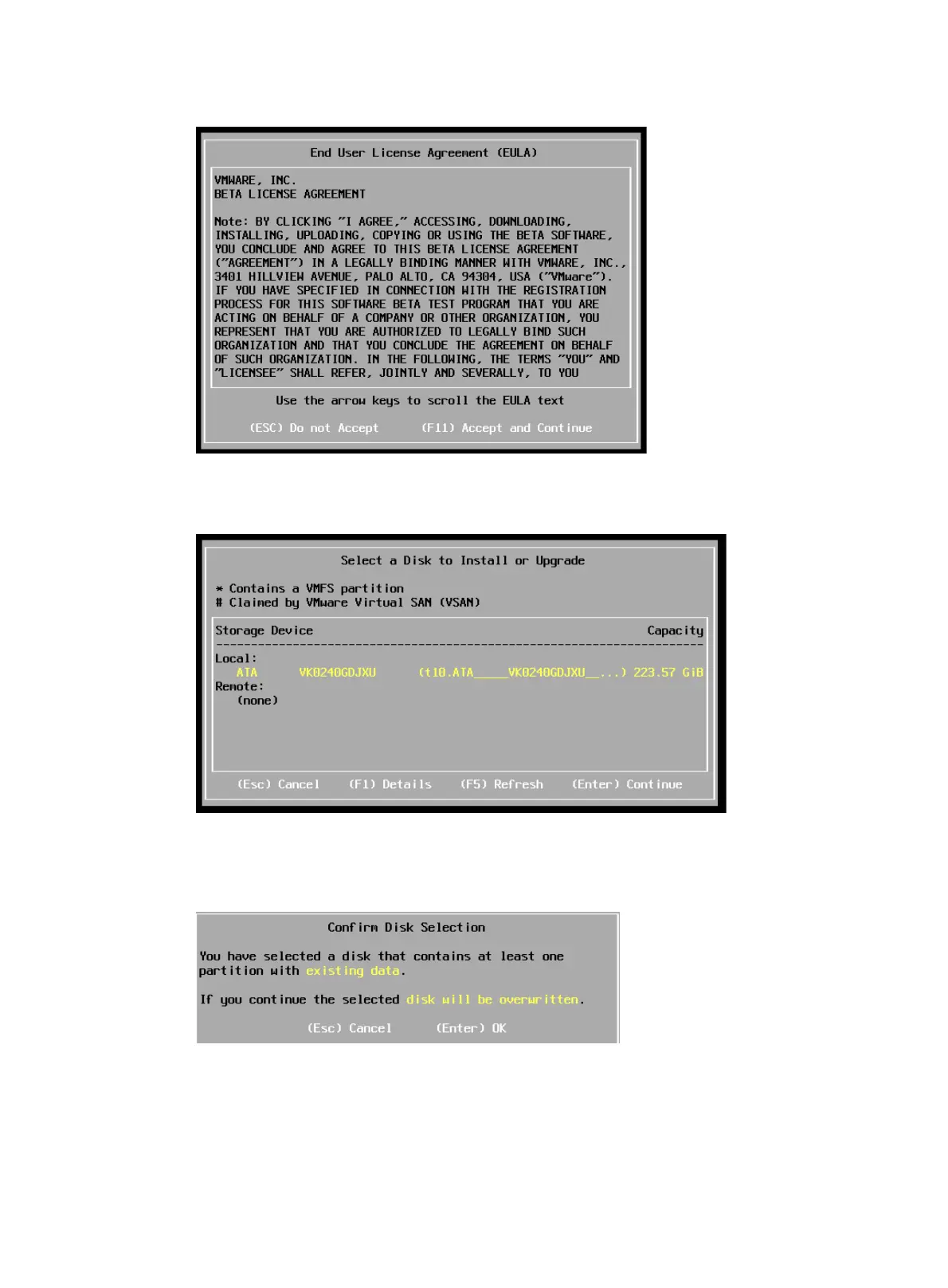 6. Confirm disk selection and then press Enter. To change to another disk, press Esc and then