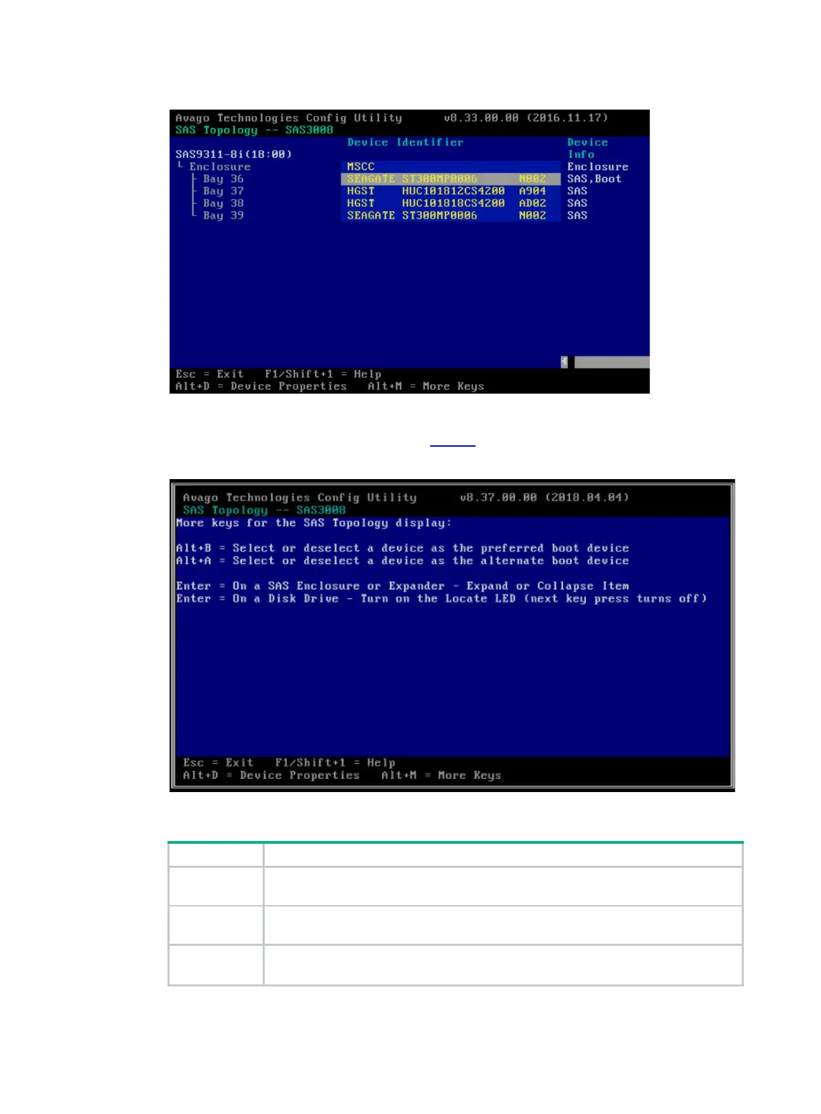 3. To display more keyboard shortcuts on the SAS Topology screen, press Alt+M. For more