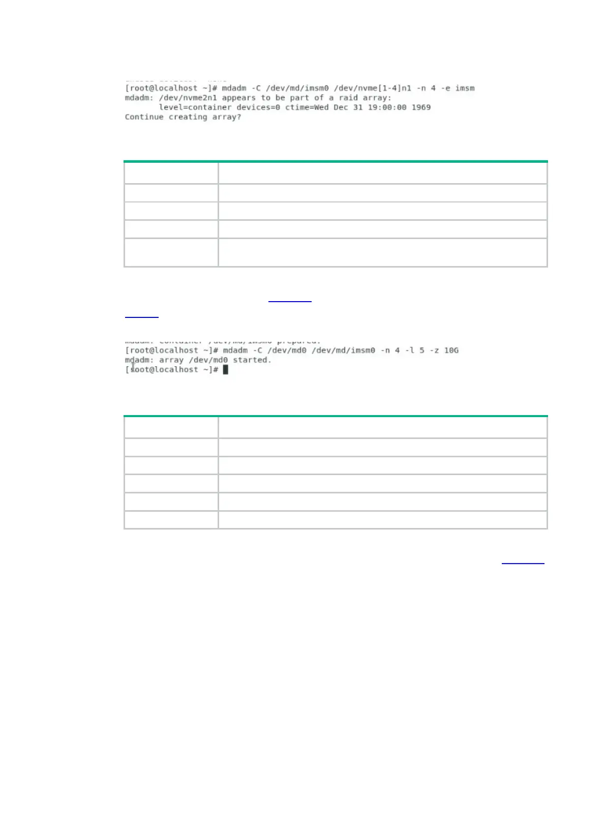 2. Execute the mdadm -C /dev/md0 /dev/md/imsm0 -n 4 -l 5 -z 10G command to