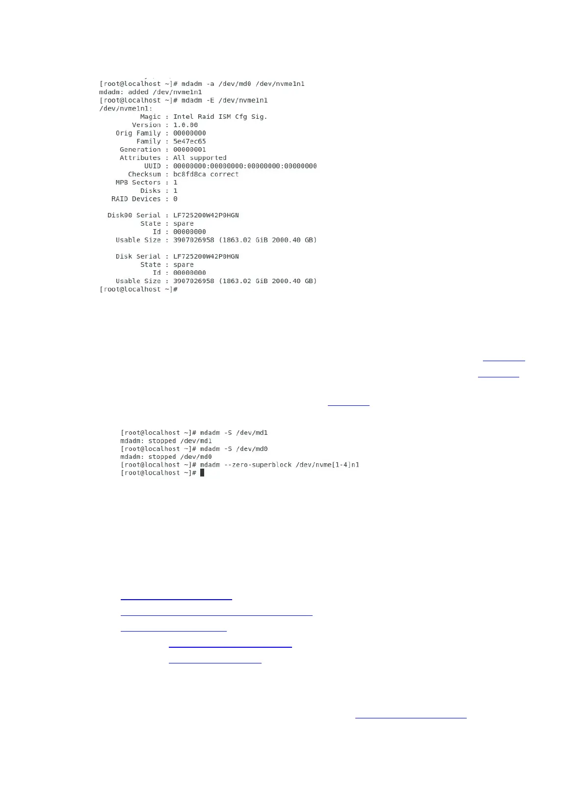 3. Execute the mdadm ––zero-superblock /dev/nvme[1-4]n1 command to remove