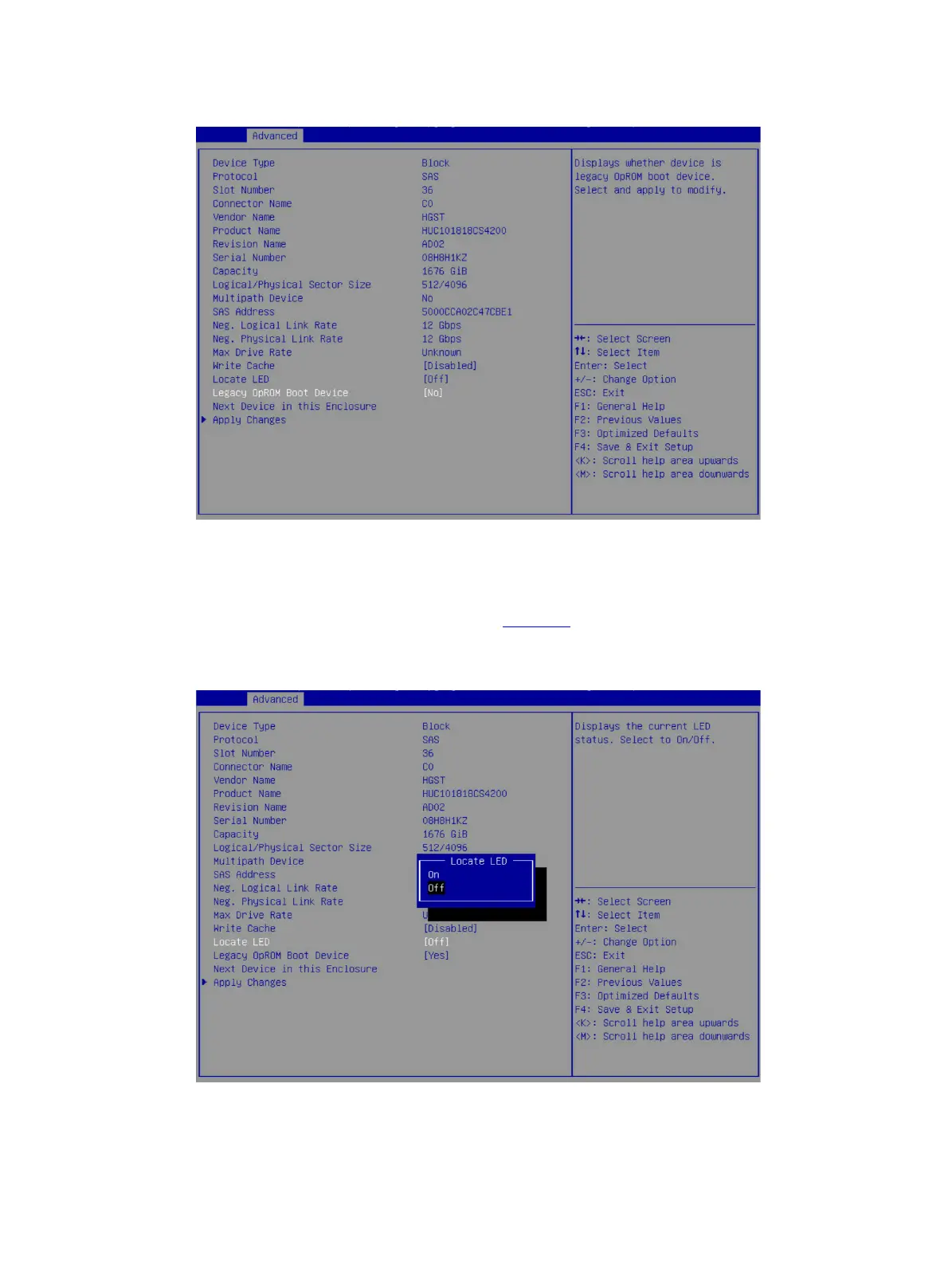 1. On the drive properties screen as shown in Figure 12, select Locate LED and press Enter.